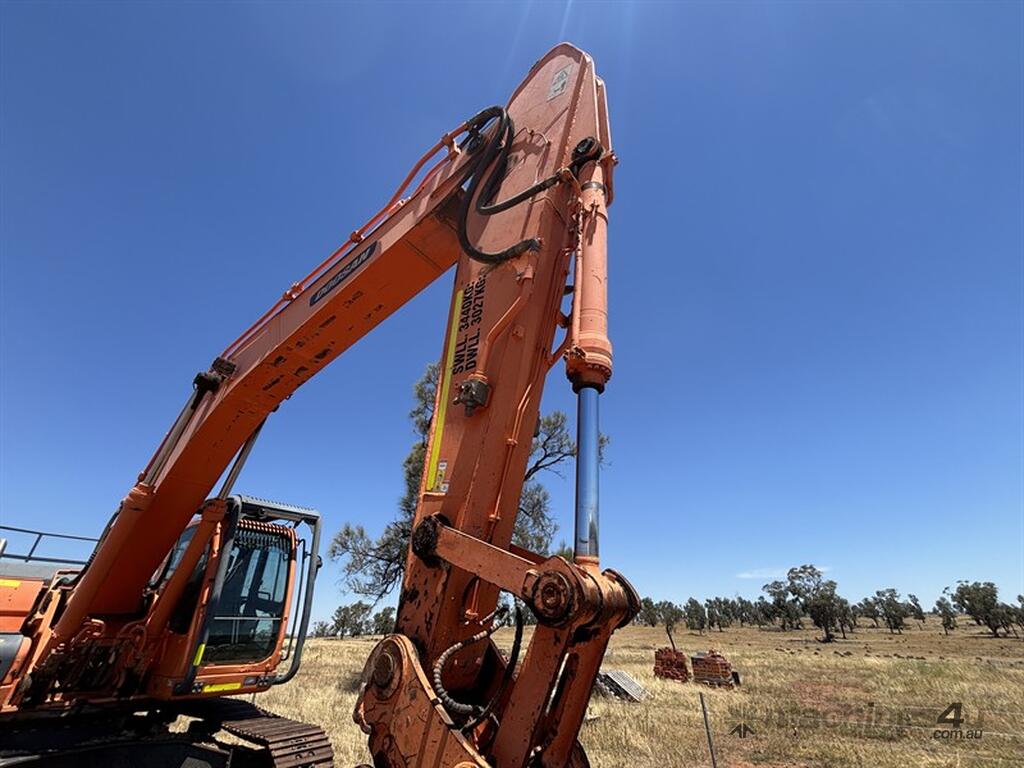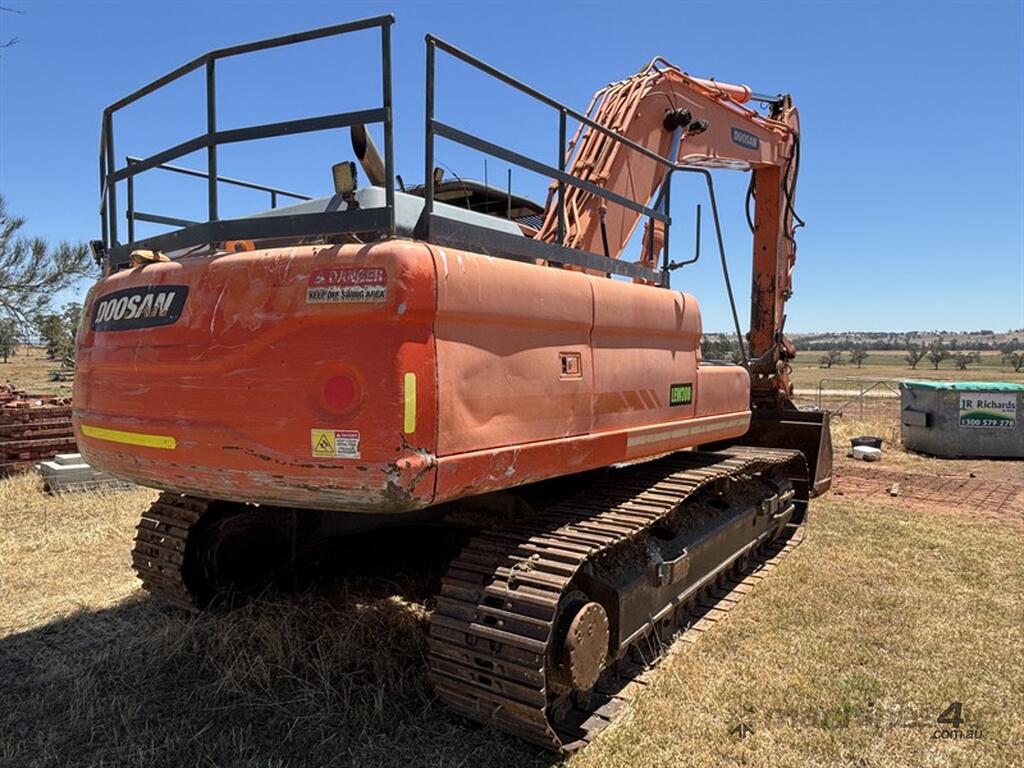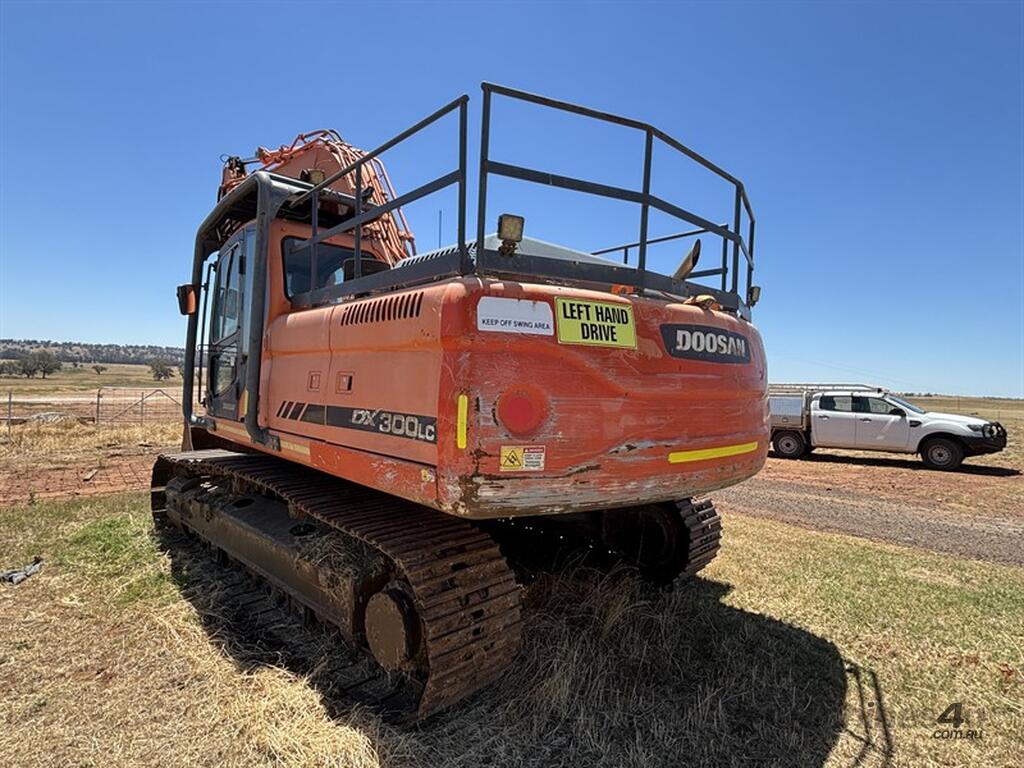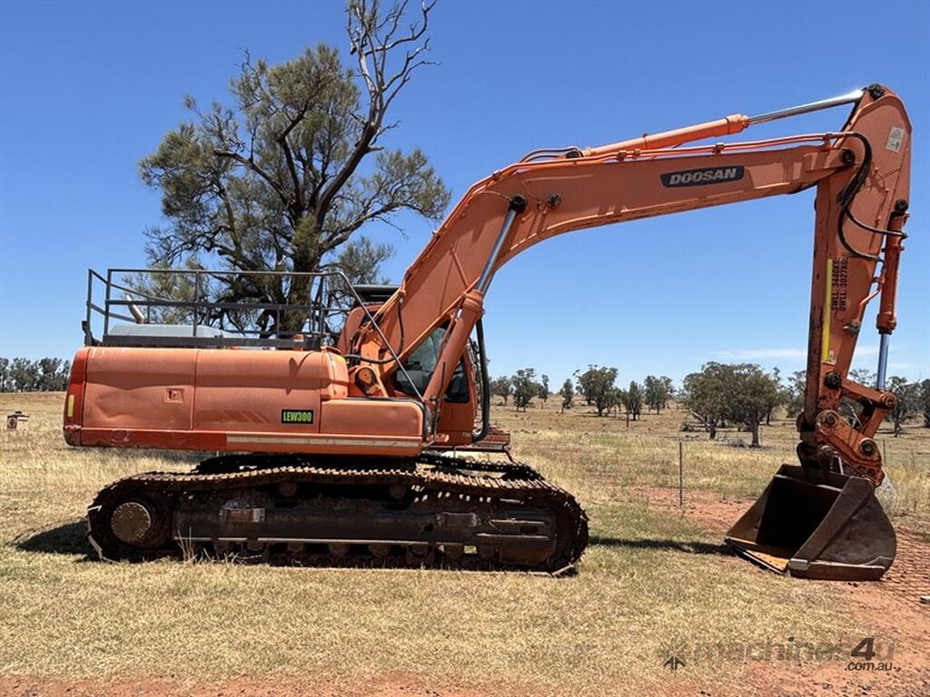 2008 DOOSAN DX300LC EXCAVATOR, S/N: DHKCECAAC80007516, showing 10 658hrs, includes 1500mm, 1050mm (not pictured) and 600mm toothed GP digging buckets, 1800mm mud bucket, ripper attachment, 500mm wide compacting roller and hydraulic grab, fitted with quick hitch, auxillary hydraulics, unit presents and runs well, no longer required, located Dubbo
