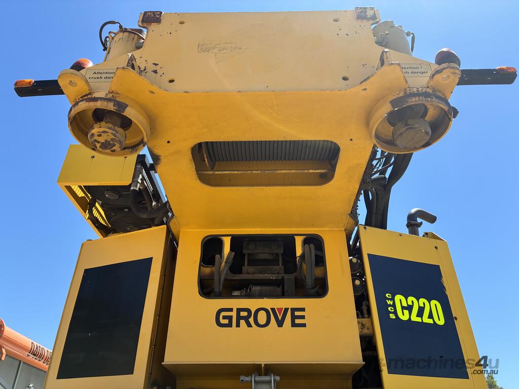CP: 12/2008,Built: 12/2008,Grove,GMK5220,All Terrain Crane,Diesel Turbo,103768 (Kms. Showing on Odometer),13973 (Hrs. Showing on Hour meter),Colour: Yellow,Rego. No: AW74NL NSW,Rego expiry: 26/09/2026,Serial No: 52202126,Plates to All