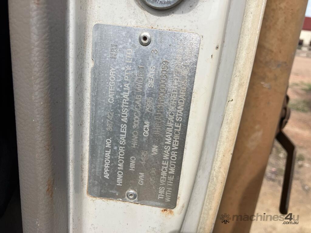CP: 05/2008,Hino,300 616 ,Cab Chassis,Manual,spring,4 Cyl,Diesel,Odometer not visible,Hourmeter not visible,Colour: White,Rego. No: NEC495 QLD,VIN: JHFUU13H,Length: 7 m,GVM: 4459,GCM: 7995,Sold with No Plates,WOVR Status: WOVR N/A,Incident Type: Impact