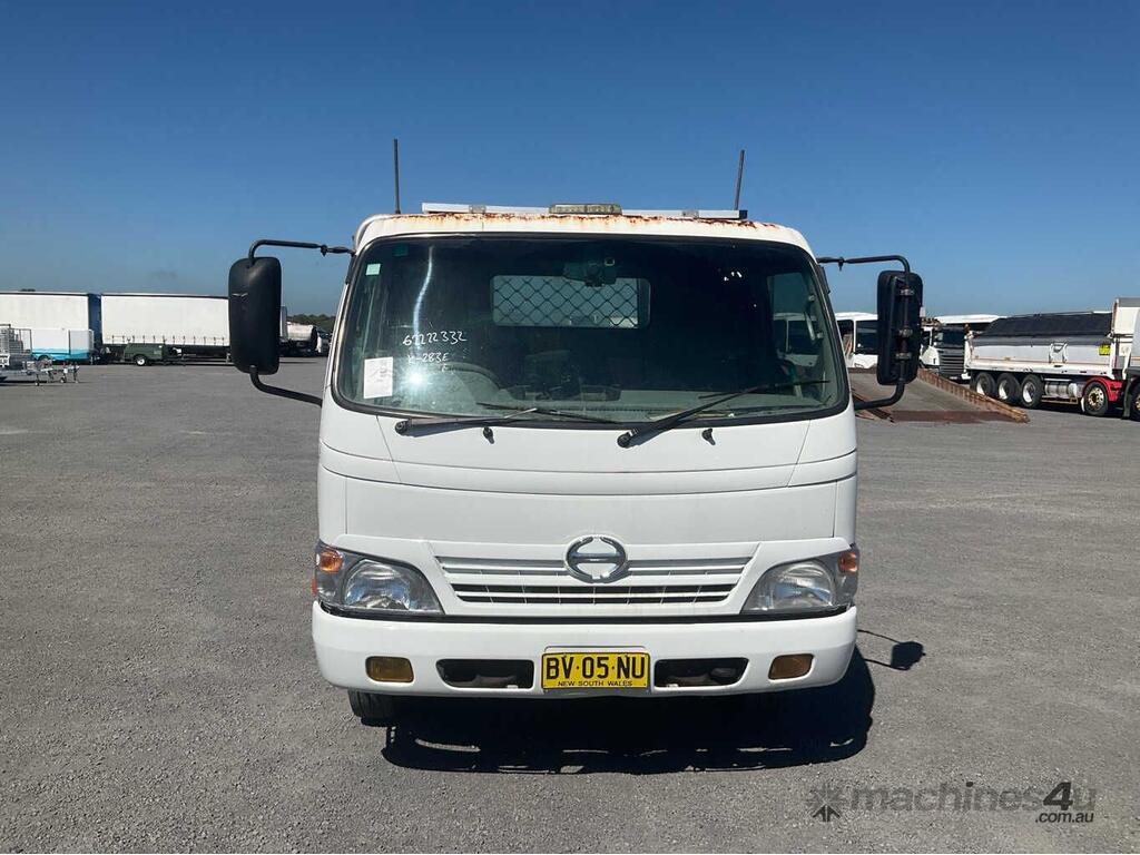 CP: 05/2008,Hino,300 series,Tray Top,Manual,Spring,4 Cyl,Diesel Turbo,6 Gears,493496 (Kms. Showing on Odometer),Hourmeter not visible,Rego. No: BV05NU NSW,Rego expiry: 27/08/2026,VIN: JHFUU10H,Key No: 283E,Length: 6.2 m,GVM: 7500,GCM: 11000,Sold with No Plates,Key No: 283E