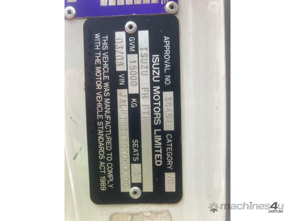 CP: 03/2008,Isuzu,FTR900,Crane Truck,Manual,Leaf Springs,6 Cyl,Diesel,Turbo,548024 (Kms. Showing on Odometer),Hourmeter not visible,Colour: White,Rego. No: CH77HY NSW,VIN: JALFTR34T87000008,Length: 10.1 m,GVM: 15000,GCM: 24000,Sold with No Plates,WOVR Status: Repairable Write-Off,Incident Type: Impact
