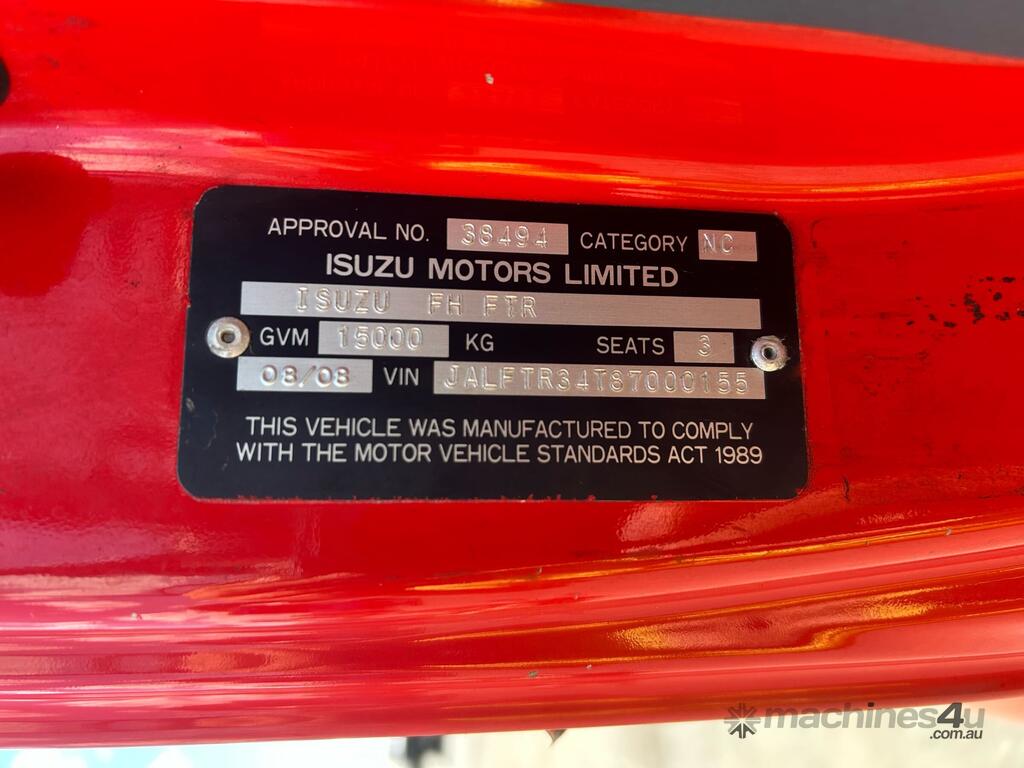 CP: 08/2008,Isuzu,FTR900,Curtain Sider (Missing Curtains),Automatic,Spring,6 Cyl,Diesel,519671 (Kms. Showing on Odometer),Hourmeter not visible,Colour: Red,Rego. No: 546LNB QLD,VIN: JALFTR34T87000155,Key No: 13,GVM: 15000,GCM: 24000,Sold with No Plates,Key No: 13