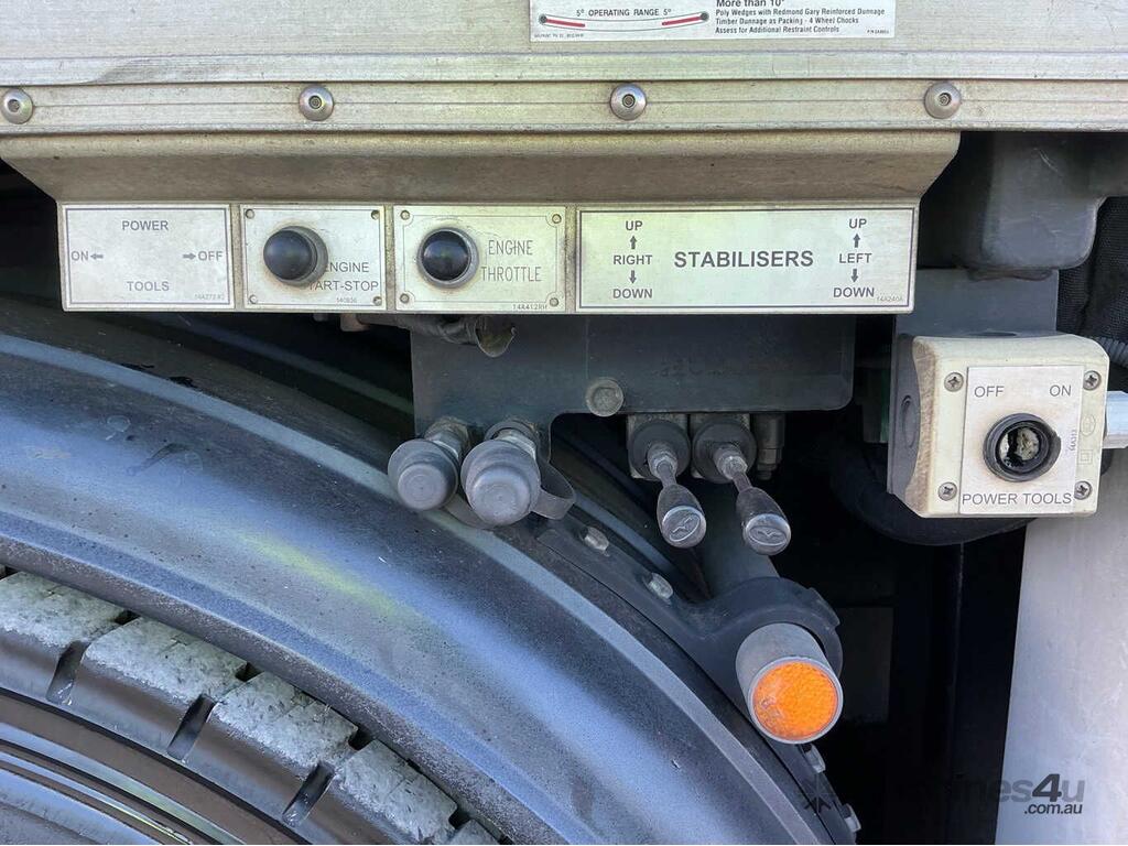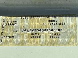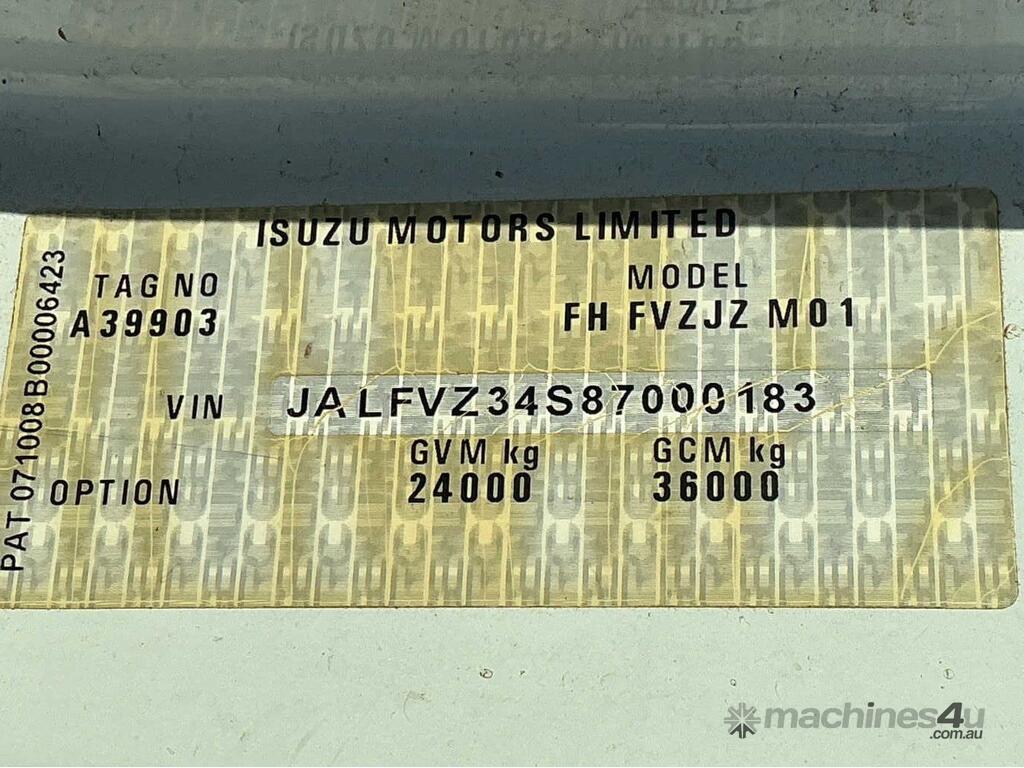 CP: 12/2008,Isuzu,FVZ 1400,EWP,Automatic,Spring ,Engine #: 6HK1469043,6 Cyl,Diesel Turbo,264674 (Kms. Showing on Odometer),14754 (Hrs. Showing on Hour meter),Colour: White,Rego. No: XN62OM NSW,Rego expiry: 31/08/2026,VIN: JALFVZ34S87000183,Key No: 446E,Length: 10 m,GVM: 24000,GCM: 36000,Sold with No Plates,Key No: 446E