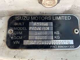 CP: 11/2008,Isuzu,FVZ 1400,Table Top,Automatic,Sitec series II 295,6 Cyl,Diesel,Direct Injection,8 Gears,171138 (Kms. Showing on Odometer),Hourmeter not visible,Colour: White,Unregistered,VIN: JALFVZ34S87000176,Key No: 4,GVM: 24000,GCM: 36000,Sold with No Plates,Key No: 4