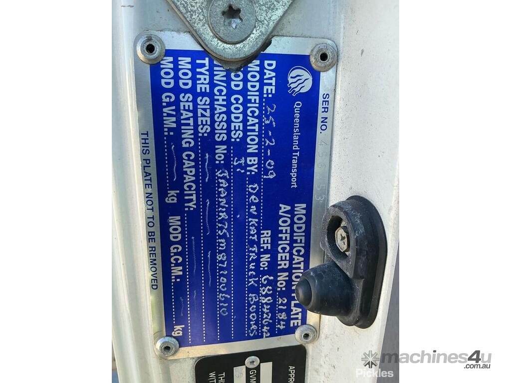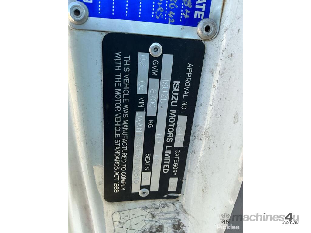 CP: 09/2008,Isuzu,NQR 450 Long,Pantech,Manual,Leaf Spring,Isuzu 4HK1,4 Cyl,Diesel,489305 (Kms. Showing on Odometer),Hourmeter not visible,Colour: White,Unregistered,VIN: JAAN1R75M87100610,Key No: 75,Length: 8.3 M,GVM: 8700,GCM: 12200,Sold with No Plates,WOVR Status: WOVR N/A,Key No: 75
