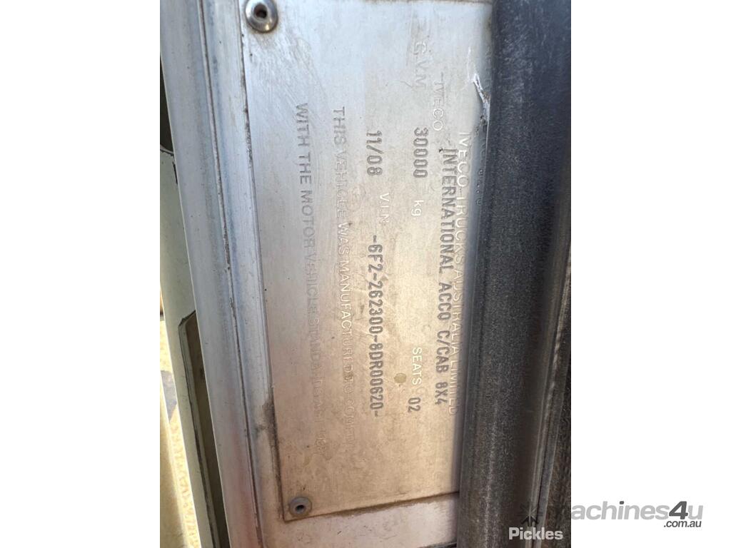 CP: 11/2008,Iveco,ACCO,Cab Chassis,Automatic,Airbag,6 Cyl,Diesel,Odometer not visible,Hourmeter not visible,Colour: White,Unregistered,VIN: 6F22623008DR00620,Length: 9500 m,GVM: 30000,Sold with No Plates,WOVR Status: WOVR N/A,Incident Type: Not Applicable