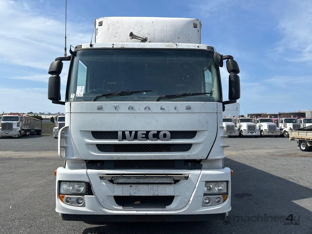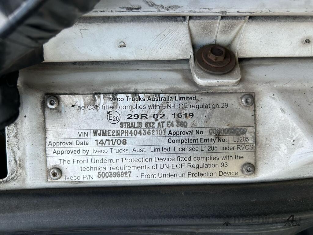 CP: 11/2008,Iveco,Stralis,Curtainsider,Automatic,Airbag,Diesel,1085528 (Kms. Showing on Odometer),Hourmeter not visible,Colour: White,Rego. No: 035PGN QLD,VIN: WJME2NPH,Key No: 340,GVM: 25100,GCM: 29000,Sold with No Plates,Key No: 340