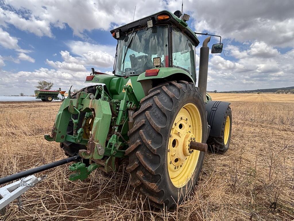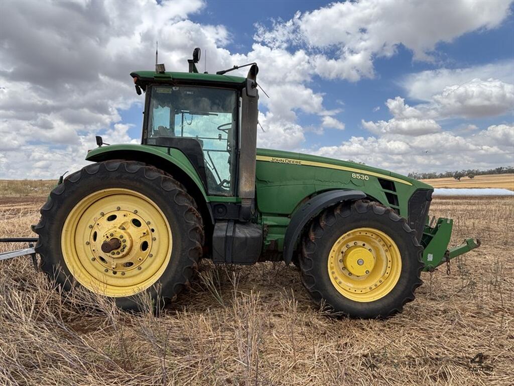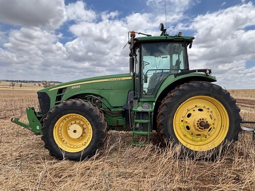 2008 JOHN DEERE 8530, S/N: RW8530D020270, showing 5716 hrs, CVT transmission, front and rear 3PL, hydraulic top link on rear, PTO, FWA, 480/80R50 rear tyres, 480/70R34 front tyres, JD Link compatible, beleived to have had an engine rebuild at some stage, runs and drives, bonnet cracked, located Dubbo