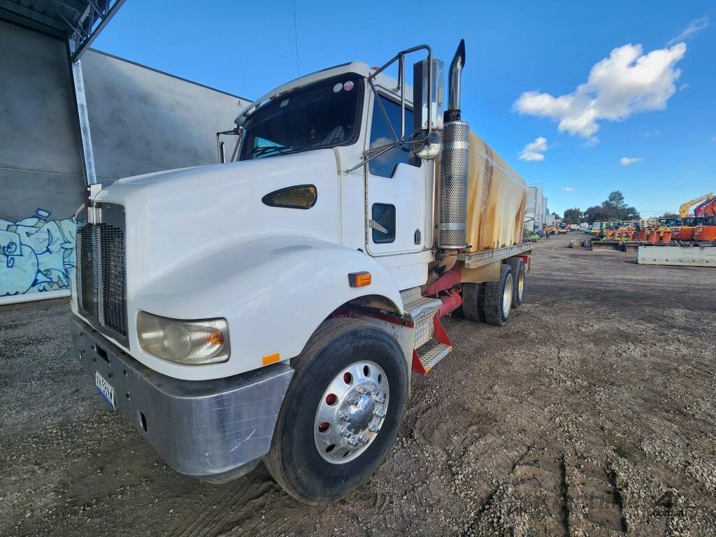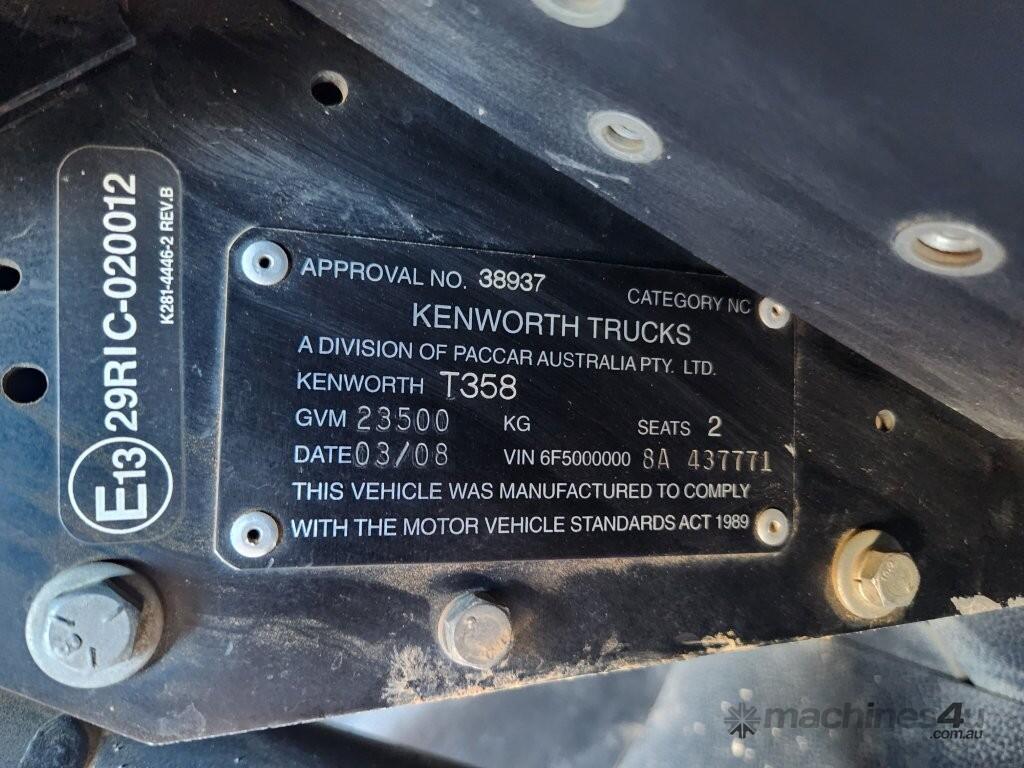 USED 2008 KENWORTH T358 6 X 4 TRUCK (TP124) WITH 13000 LITRE BAFFLED WATER TANK, WATER PUMP DRIVE SYSTEM, WATER SUCTION SYSTEM, REAR WATER SPRAYERS, IN CAB WATER SPRAYER CONTROLS, CIVIL SPEC, REAR VIEW CAMERA, STORAGE BOXES, AUTOMATIC TRANSMISSION, 360,200klms. READY FOR WORK WITH 3-MONTH DRIVETRAIN WARRANTY AND RWC.