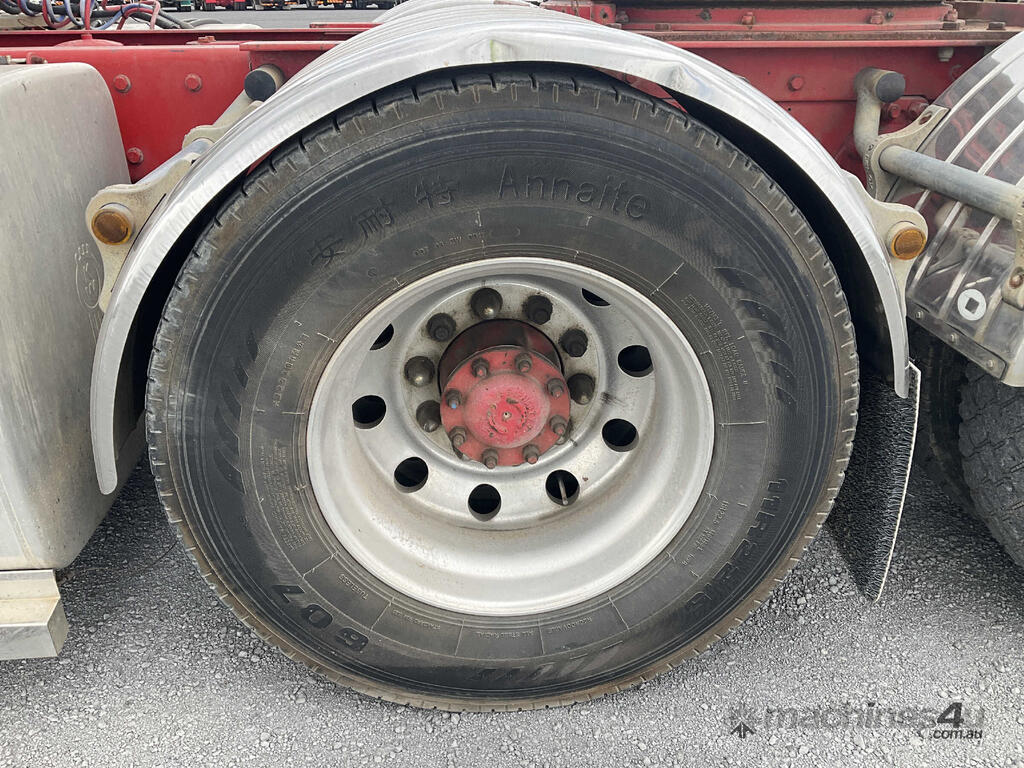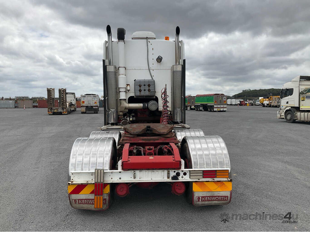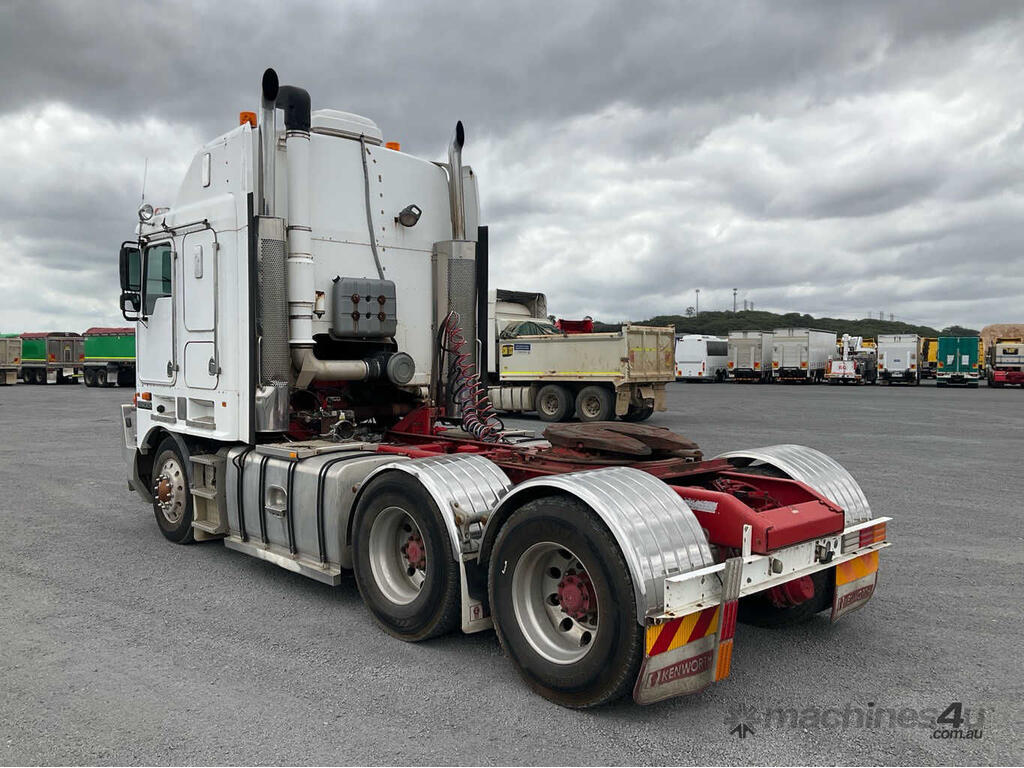 CP: 06/2008,Kenworth,K108,Prime Mover Sleeper Cab,Automated Manual Transmission,Airbags ,Engine #: 79305300,Cummins ISX,6 Cyl,Diesel Turbo,226698 (Kms. Showing on Odometer),14262 (Hrs. Showing on Hour meter),Colour: White,Unregistered,VIN: 6F50000008A438349,Length: 6.8 m,GVM: 26500,GCM: 97000,Sold with No Plates