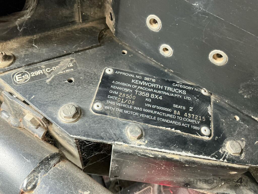 CP: 01/2008,Kenworth,T358,Cab Chassis,Manual,Airbag,CAT,6 Cyl,Diesel,15 Gears,406896 (Kms. Showing on Odometer),5746 (Hrs. Showing on Hour meter),Colour: White,Rego. No: NP(937KQS), Unregistered QLD,VIN: 6F50000008A437215,Length: 7.9 m,GVM: 28500,GCM: 28500,Sold with No Plates