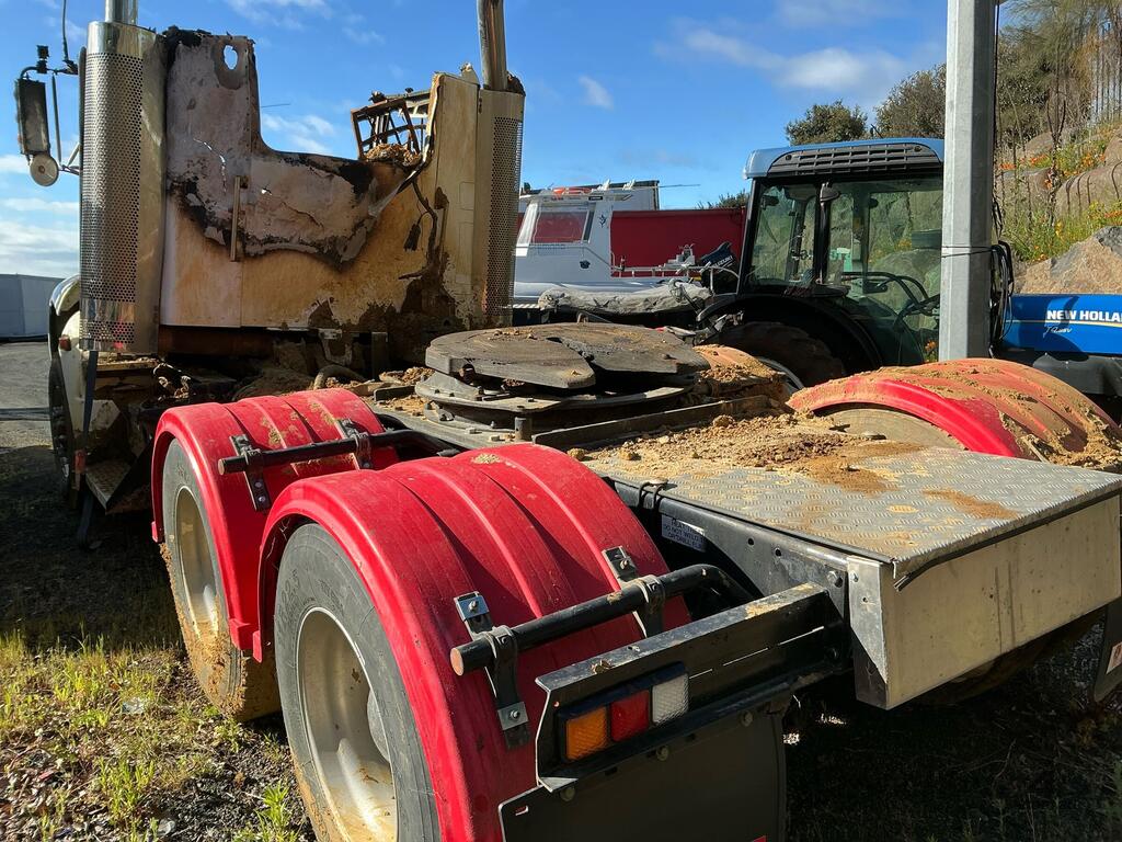 CP: CIRCA 2008,Kenworth,T408,Prime Mover,Odometer not visible,Hourmeter not visible,Colour: Burnt,Rego. No: NP(XT84CM), Unregistered NAT,VIN: 6F50000008A439977,Sold with No Plates,WOVR Status: WOVR N/A,Incident Type: Fire