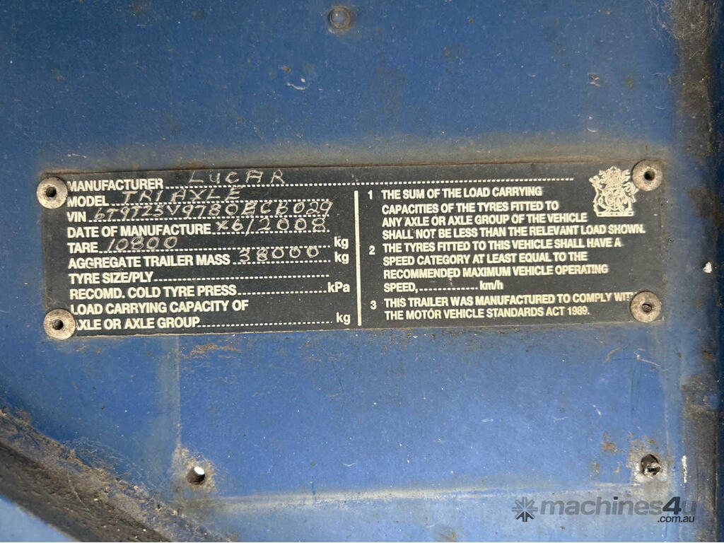 CP: 06/2008,Lucar,Tri Axle Refrigerated Pantech Trailer,24293 (Kms. Showing on Hubometer),Colour: White,Rego. No: YQ78PA QLD,VIN: 6T9T25V9780BCB029,Sold with No Plates