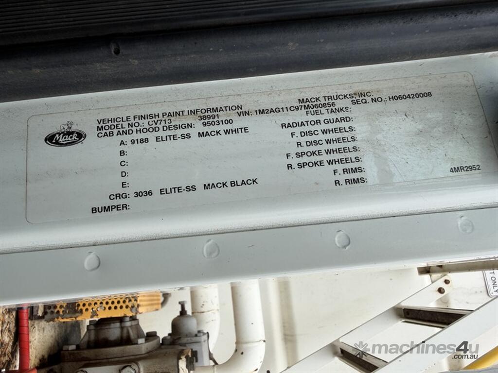 2008 MACK GRANITE SERVICE TRUCK, VIN: 1M2AG11C97M060856, E/N: ###, 114,718 KM SHOWING, 13,273 HOURS SHOWING, NO REGISTRATION, NO COI. LOCATION: HALFERTY STREET, EMERALD, QLD 4720. INSPECTIONS & COLLECTIONS: MONDAY TO FRIDAY, 8AM TO 4PM. ENQUIRIES: RYAN OGDEN BROWN ON OR RYANEMERALDAUCTIONCENTRE