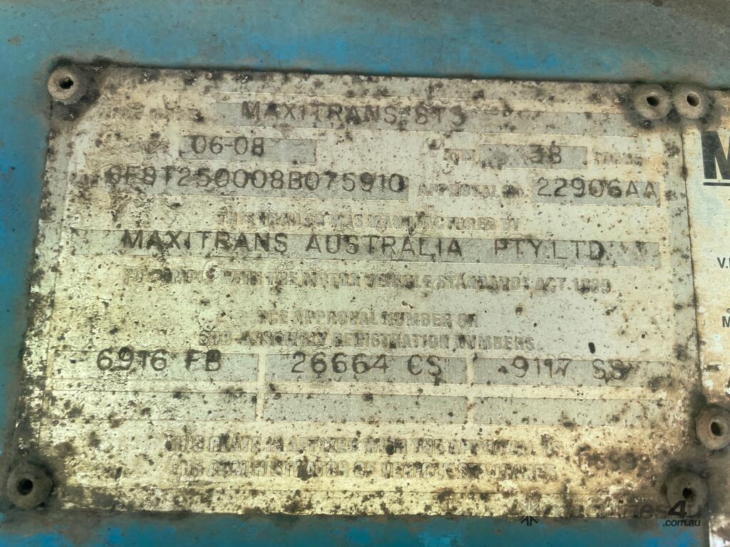 CP: 06/2008,Maxitrans,ST3,Tri Axle Flat Top B Trailer,478514 (Kms. Showing on Hubometer),Colour: Blue,Rego. No: NP(530QPG), Unregistered QLD,VIN: 6F8T250008B075910,Sold with No Plates