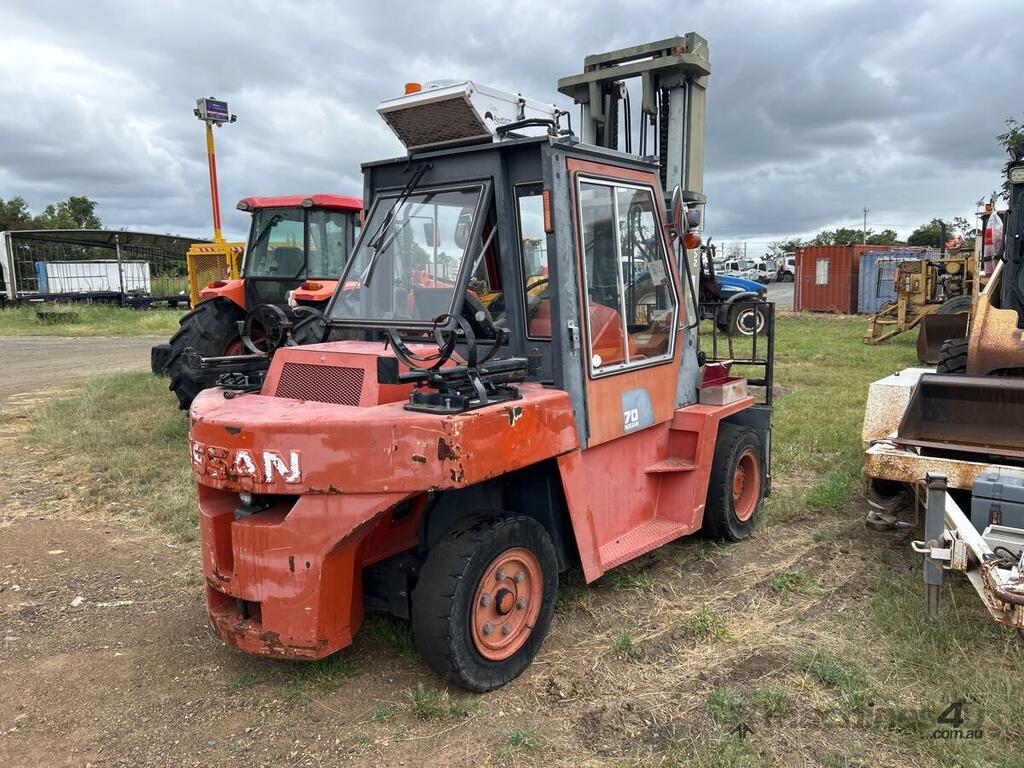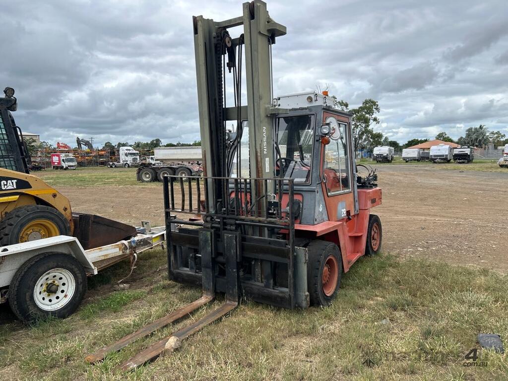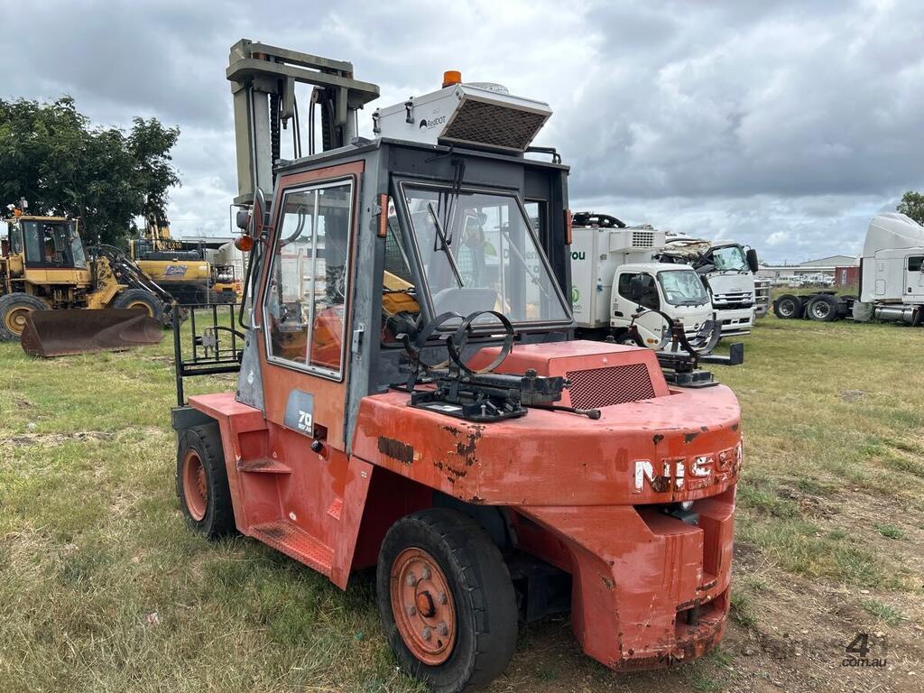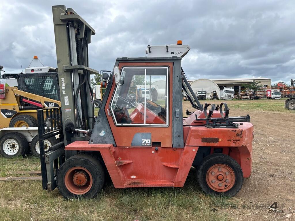 CP: CIRCA 2008,Nissan,BF05H70U,Forklift,6 Cyl,Petrol & LPG (Dual),Odometer not visible,3139 (Hrs. Showing on Hour meter),Colour: Orange,Rego. No: NP(C68505), Unregistered QLD,Chassis: C68505,Serial No: BF05300145,Sold with No Plates,Key No: M17