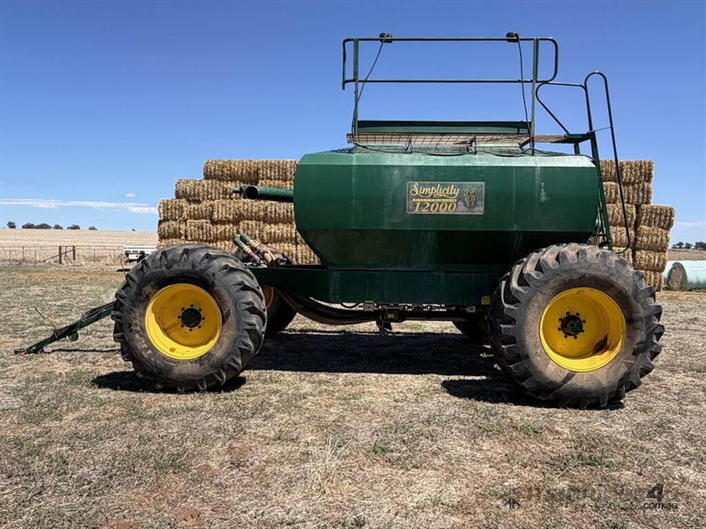2008 SIMPLICITY 12000 TQ2 AIR SEEDER CART, S/N: 88, 12000L, 2 bins, 3m wheel centres, 6 outlet, ground drive, ISOBUS harness with John Deere rate controller 2000 & gearbox actuators, hydraulic auger, located Dubbo