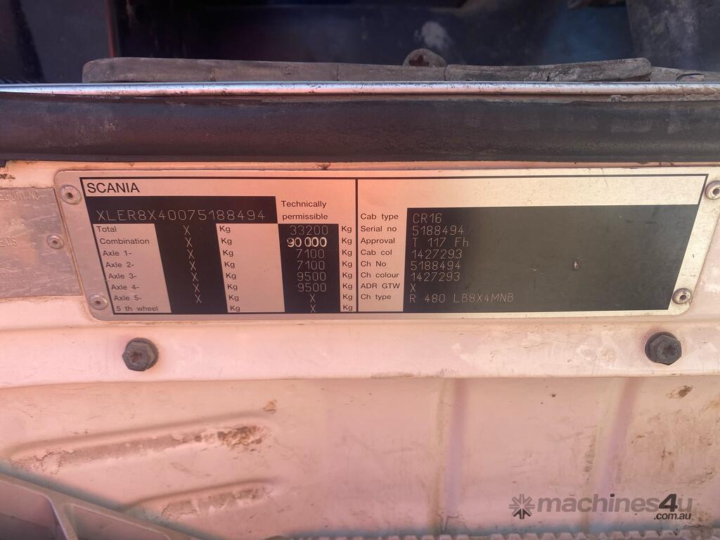 CP: 02/2008,Scania,R480,Automatic with Manual Mode,Airbag,Diesel,Turbo,835319 (Kms. Showing on Odometer),Hourmeter not visible,Colour: White,Rego. No: NP(CJ99GV), Unregistered NSW,VIN: XLER8X4,GVM: 33200,GCM: 90000,Sold with No Plates,WOVR Status: Repairable Write-Off,Incident Type: Impact