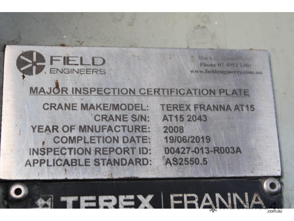 2008 Terex Franna AT15 :      $125,000 AUD($137,500 Inc. GST)