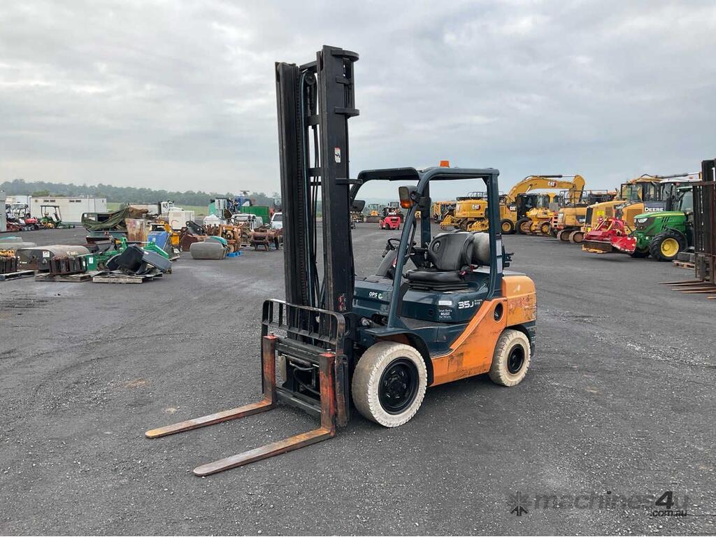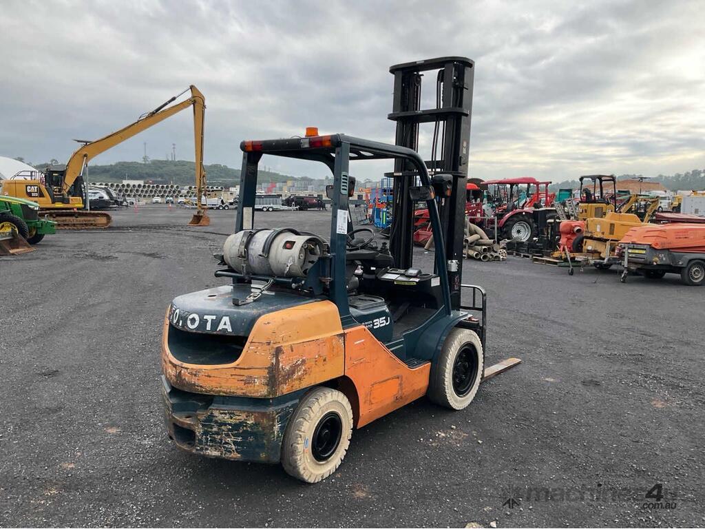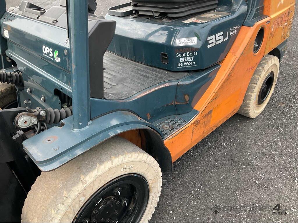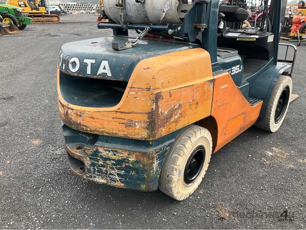 CP: CIRCA 2008,Toyota,32-8FGJ35,Forklift (Counterbalanced),Engine #: 4Y2325126,4 Cyl,Petrol & LPG (Dual),Odometer not visible,23080 (Hrs. Showing on Hour meter),Colour: Orange,Unregistered,Serial No: 12330,Sold with No Plates,Key No: 16S