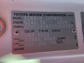 CP: 07/2008,Toyota,Coaster 50 Series,Bus,Automatic,Spring,N04C,4 Cyl,Diesel Turbo,318475 (Kms. Showing on Odometer),Hourmeter not visible,Colour: White,Rego. No: AW39VM NSW,Rego expiry: 31/08/2026,VIN: JTGFC59,Key No: 565S,Length: 7.2 m,GVM: 4990,Sold with No Plates,Key No: 565S