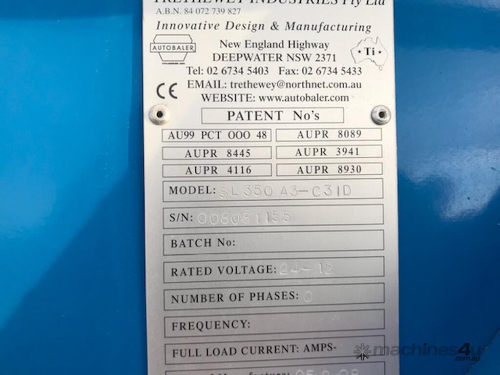 Trethaway Industries Auto Bailer Setup for Remote Applications Lombardi diesel motor, Trailer mounted,Tie options include twine with 240kg breaking strain, wire or metal strap c/w optional anti-rebound fingers for heavier & faster baling,
