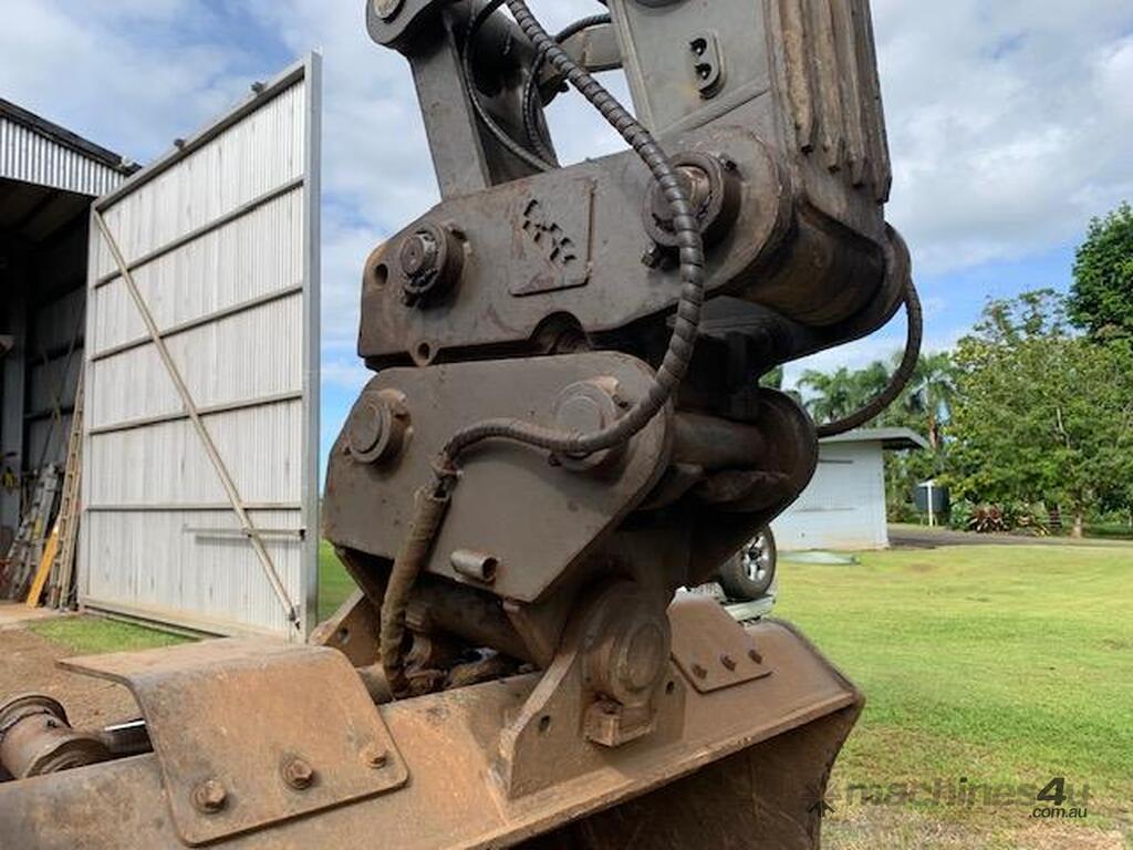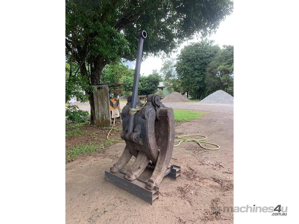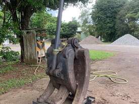 1800 Tilting mud bucket and a manual 3 x 2 Heavy Duty Rock Grab.
