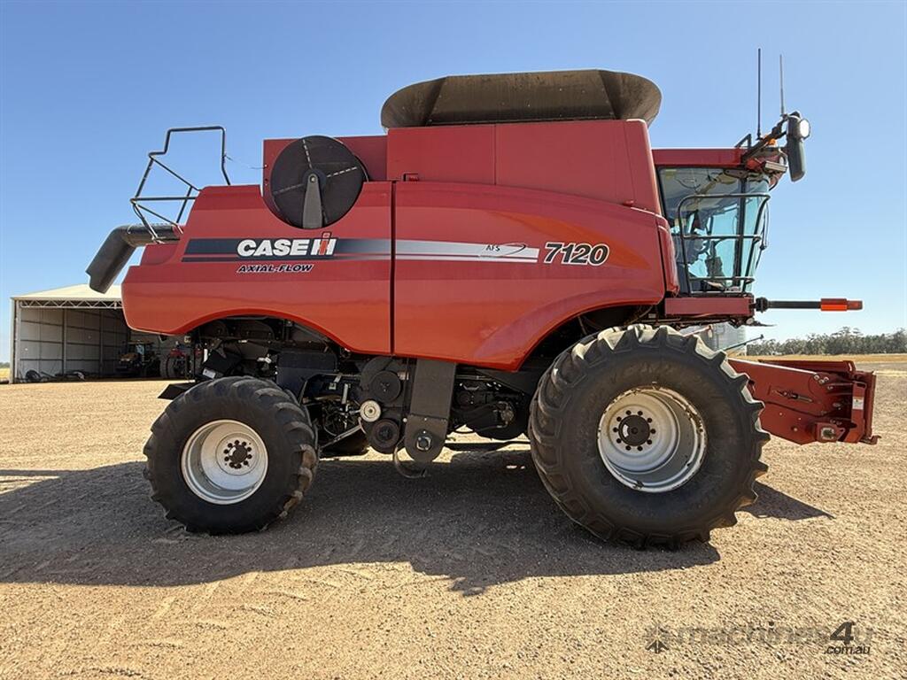 2009 CASE IH 7120 HEADER. Serial no. Y9G206672. Engine hours 4454. Threshing hours 3115. UHF. Radio. Rangepoint GPS with annual subscription. Pro 700 screen and 372 receiver included. Pre season completed by Three River Machinery, annually. Front tyres 900/60R32 and rear tyres 600/65R28. Supplied wtih 2152 Case 40ft front. Draper front. Top cross auger. Case adaptor. Front serial no. Y9ZN06197. 2 x new mats this season. New fingers last season. Supplied with Leith comb trailer serial no. 2035. Located Narro