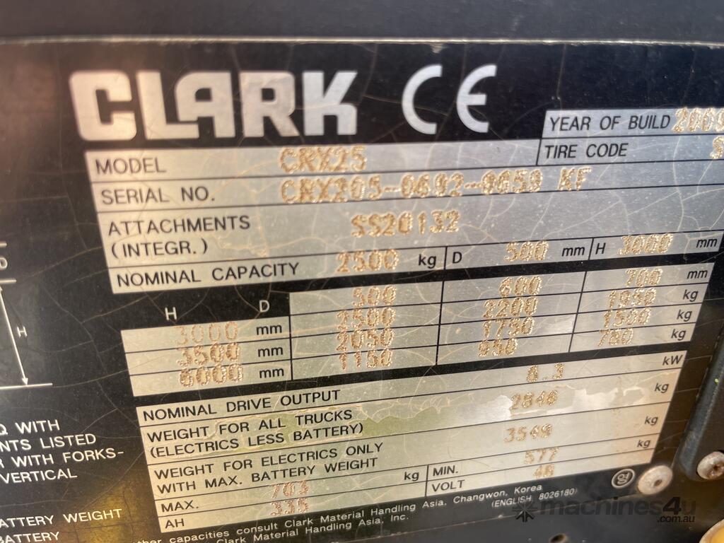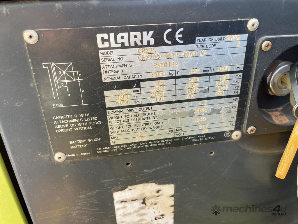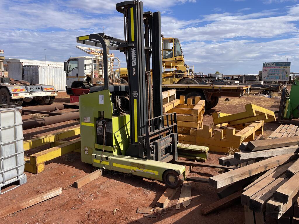 CP: CIRCA 2009,Clark,Electric Reach Forklift,Odometer not visible,Hourmeter not visible,Rego. No: NP(TE001), Unregistered,Serial No: CRX KF,Sold with No Plates,WOVR Status: WOVR N/A,Incident Type: Not Applicable