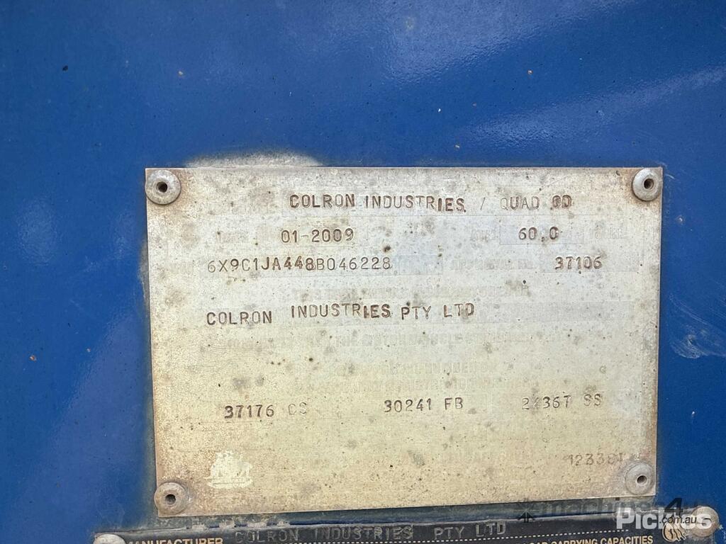 CP: 01/2009,Built: 01/2009,Colron,Quad O.D.,Quad Axle Deck Spread Low Loader,Hubometer not visible,Colour: Blue,Rego. No: X01706 NSW,VIN: 6X9C1JA448B046228,Sold with No Plates