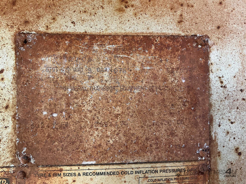 CP: 10/2009,General Transport Equipment,GTE 3-2,Tri Axle Tipping A Trailer,2202003 (Kms. Showing on Hubometer),Colour: White,Unregistered WA,VIN: 6T9T25WA190AAN076,Sold with No Plates