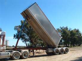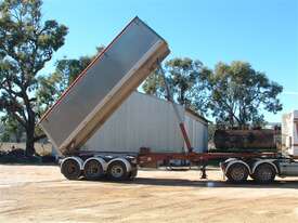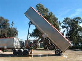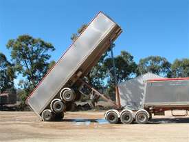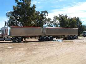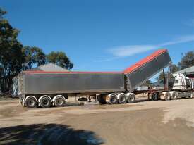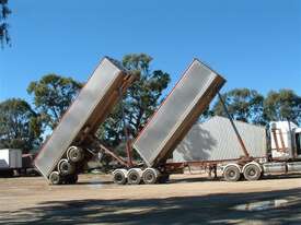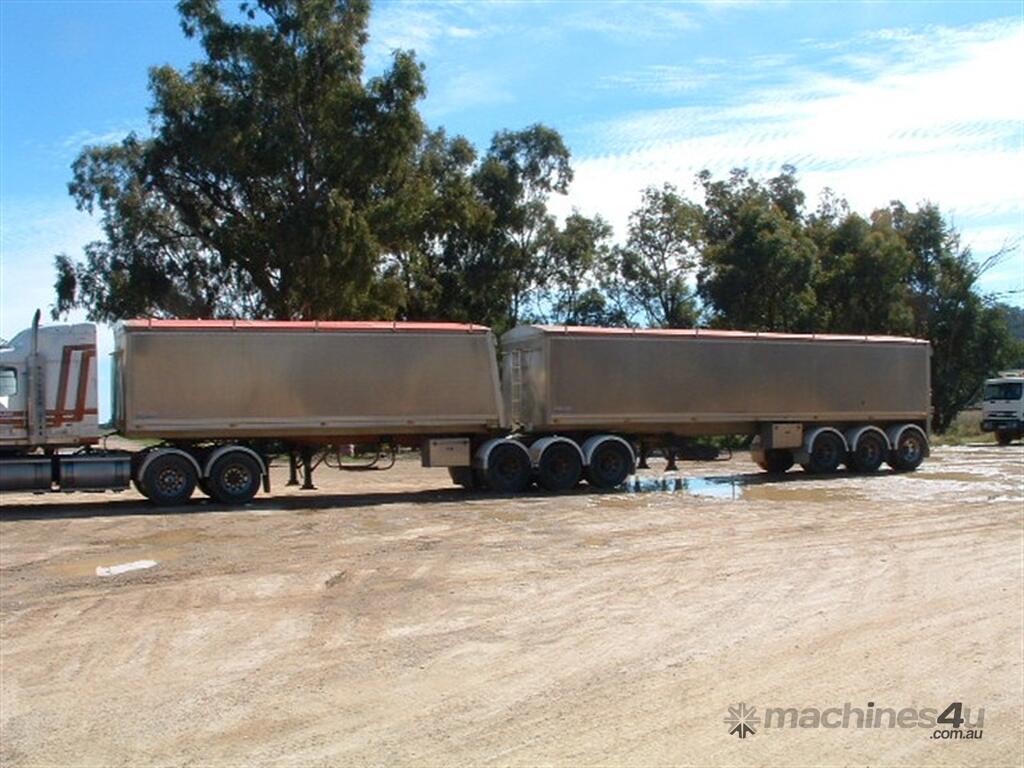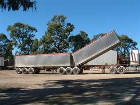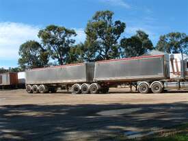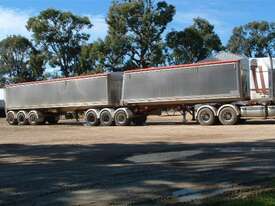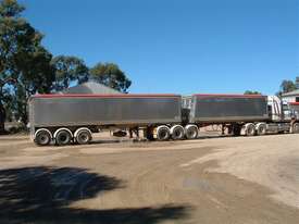 2009 Graham Lusty B-Double Grain Trailers. 2009 lead sliding A-Trailing, 26" x 6.5" chassis tipper with roll over tarp. (ATM 40T) 2009 TOA tri axle B trailer, 36.5" x 6.5" roll over tarp (ATM 40T), airbag suspension. Still registered. Trailers are located at Quirindi NSW, available at MRE Auctions online sale.