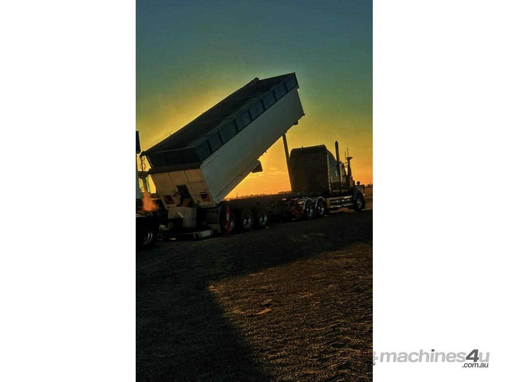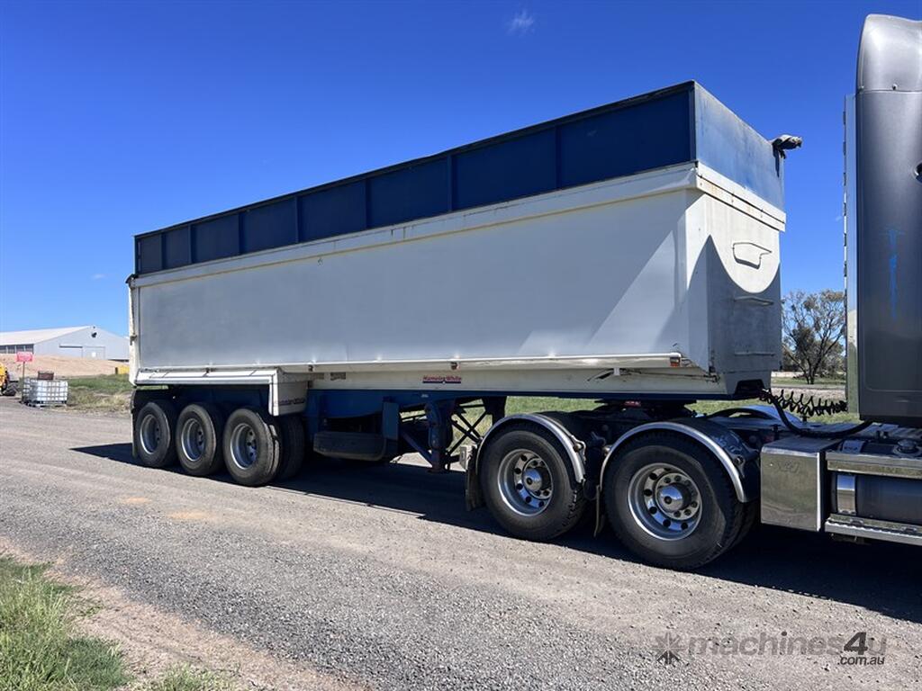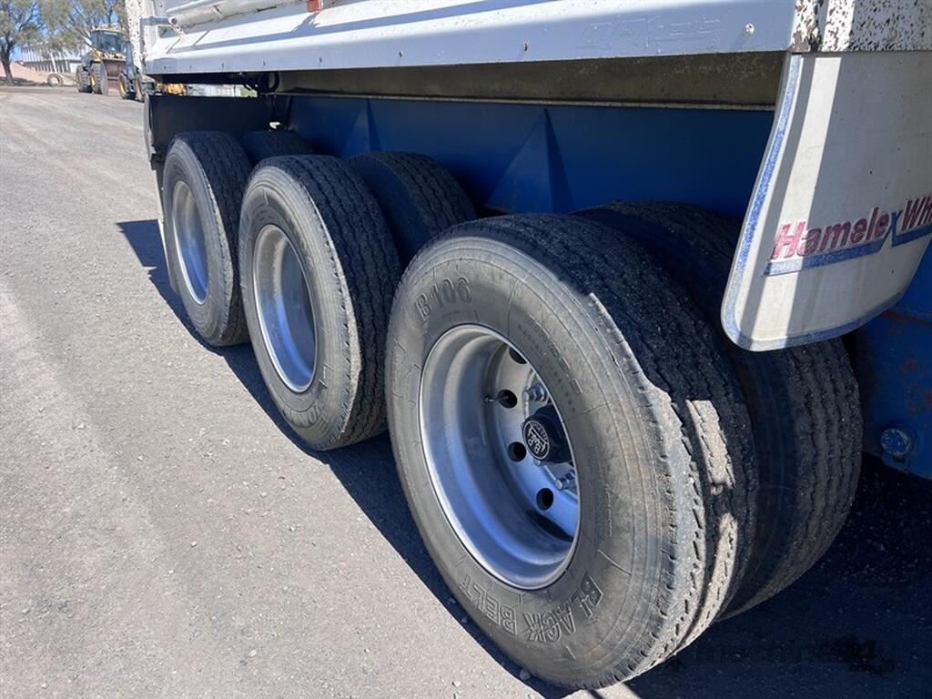 2009 Hamelex Maxi Trans Lead Chassis Tipper. 30 x 7 including the removable grain extension, air bag suspension with gauge, 8 x tyres around 80%, 4 x are around 30%, good brakes, replaced 2 x airbags and 2 x boosters recently, went over the pits and had an axle rebush in September. Multi use trailer for Grain or Gravel - never had gravel in it though. Located at Moree NSW, available at MRE Auctions online sale.