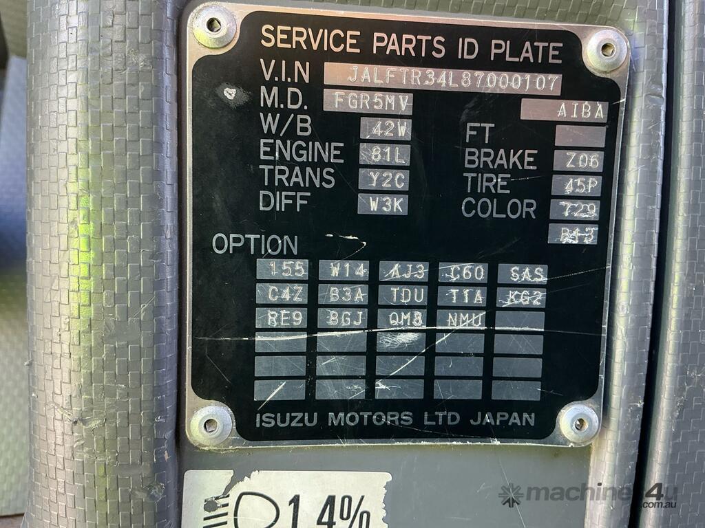 CP: 01/2009,Isuzu,FTR900 Medium,EWP,Manual,Leaf Spring Suspension ,6 Cyl,Diesel,6 Gears,328221 (Kms. Showing on Odometer),Hourmeter not visible,Colour: White,Rego. No: NP(XW29LB), Unregistered,VIN: JALFTR34L87000107,Key No: 142,GVM: 15000,GCM: 24000,Sold with No Plates,Key No: 142