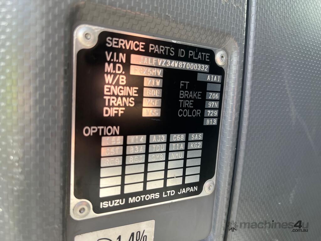 CP: 03/2009,Isuzu,FVZ 1400,Elevated Work Platform,Manual,Leaf Spring Suspension,6HK1,6 Cyl,Diesel Turbo,8 Gears,206068 (Kms. Showing on Odometer),7758 (Hrs. Showing on Hour meter),Colour: White,Rego. No: NP(BE01ZV), Unregistered NSW,VIN: JALFVZ34W87000332,Length: 9 m,GVM: 24000,GCM: 36000,Sold with No Plates