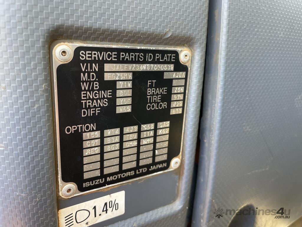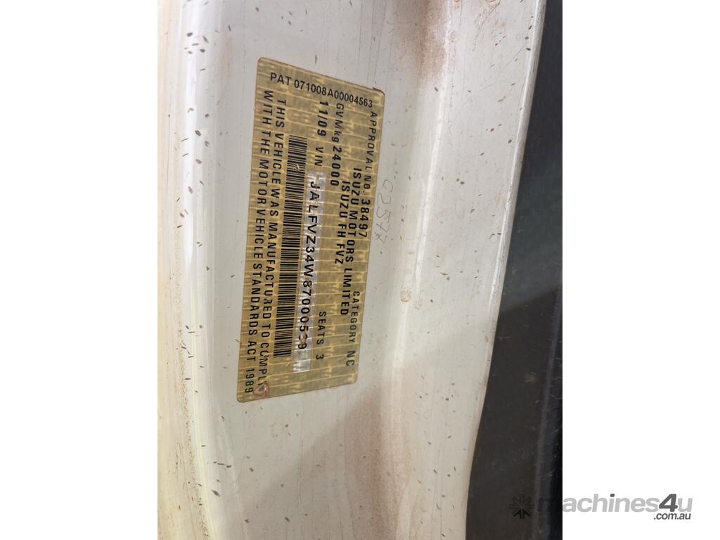 CP: 11/2009,Isuzu,FVZ 1400,Table Top,Manual,143077 (Kms. Showing on Odometer),Hourmeter not visible,Colour: White,Rego. No: NP(28577), Unregistered,VIN: JALFVZ34W87000539,Key No: offsite,GVM: 24000,GCM: 36000,Sold with No Plates,Key No: offsite