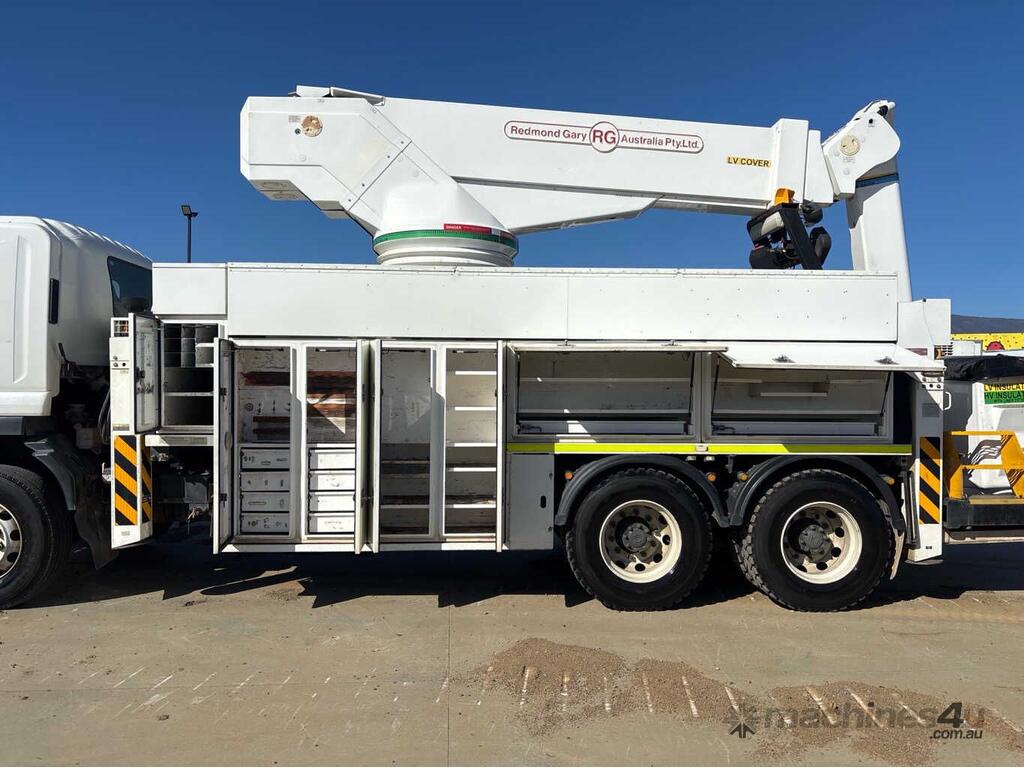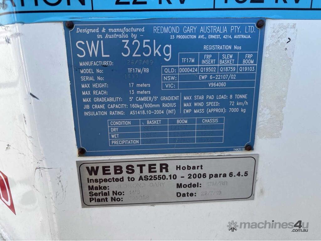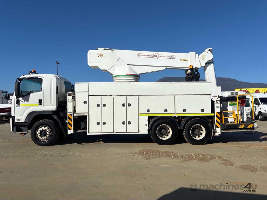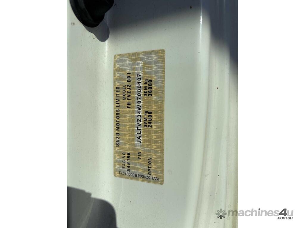 CP: CIRCA 2009,Isuzu,FVZ1400 LWB,EWP,Manual,Spring,Engine #: 6HK1482123,7.8 Ltr,6 Cyl,Diesel Turbo,8 Gears,434583 (Kms. Showing on Odometer),19707 (Hrs. Showing on Hour meter),Colour: White,Rego. No: NP(WV1442), Unregistered TAS,VIN: JALFVZ34W87000407,Length: 9.7 undefined,GVM: 24000,GCM: 36000,Sold with No Plates