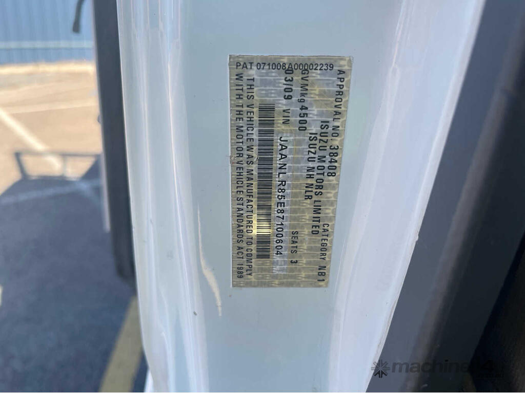 CP: 03/2009,Isuzu,NLR 200 Short,Table Top,Manual,Spring,4 Cyl,Diesel Turbo,5 Gears,281523 (Kms. Showing on Odometer),Hourmeter not visible,Colour: White,Unregistered,VIN: JAANLR85E87100604,Key No: P39,Length: 5 m,GVM: 4500,GCM: 7000,Sold with No Plates,Key No: P39