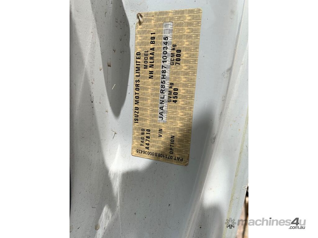 CP: 08/2009,Isuzu,NLR200,Table Top,Manual,spring,4 Cyl,Diesel,Odometer not visible,Hourmeter not visible,Colour: White,Rego. No: NP(492HL8), Unregistered QLD,VIN: JAANLR85H87100345,GVM: 4500,GCM: 7000,Sold with No Plates,WOVR Status: WOVR N/A,Incident Type: Impact