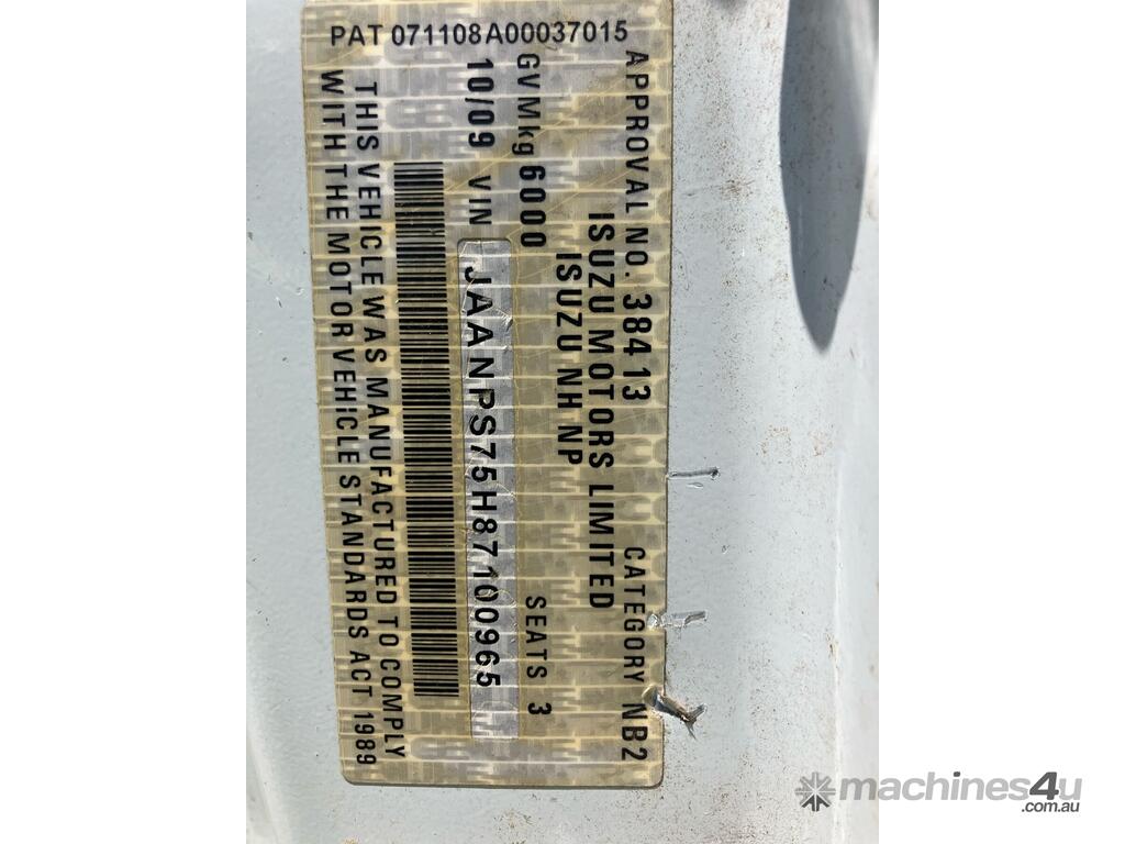 CP: 10/2009,Isuzu,NPS300,Service Body,Manual,Leaf Springs,Sitec,4 Cyl,Diesel,Turbo,5 Gears,170779 (Kms. Showing on Odometer),Hourmeter not visible,Colour: White,Rego. No: NP(BF68DJ), Unregistered NSW,VIN: JAANPS75H87100965,GVM: 6000,Sold with No Plates