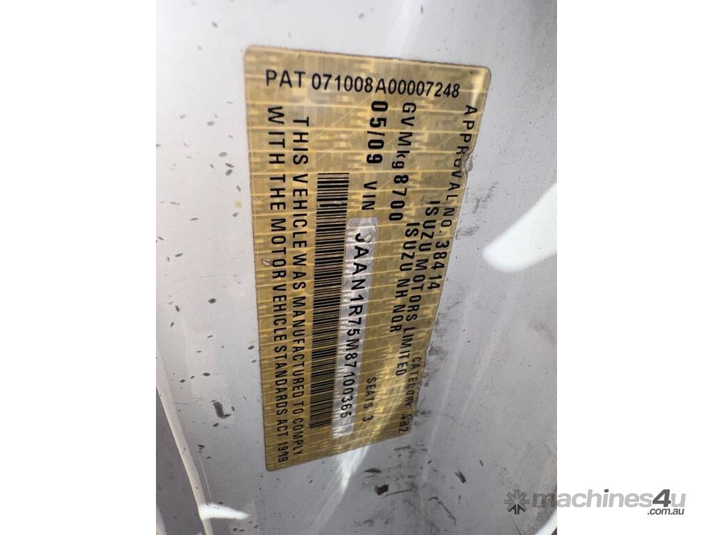 CP: 05/2009,Isuzu,NQR450,Glass Truck,Automatic,4 Cyl,Diesel,Odometer not visible,Hourmeter not visible,Colour: White,Rego. No: NP(181LUH), Unregistered QLD,VIN: JAAN1R75M87100365,GVM: 8700,Sold with No Plates,WOVR Status: WOVR N/A,Incident Type: Impact