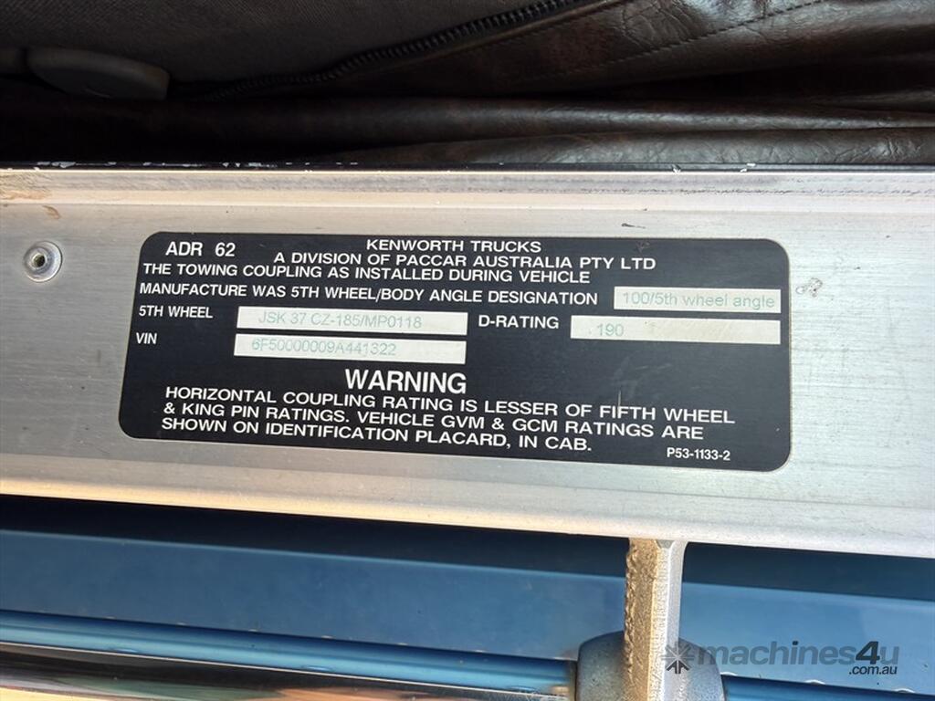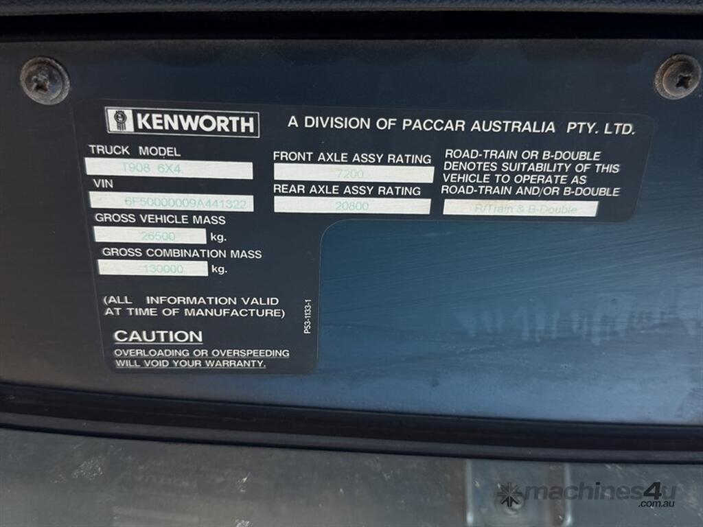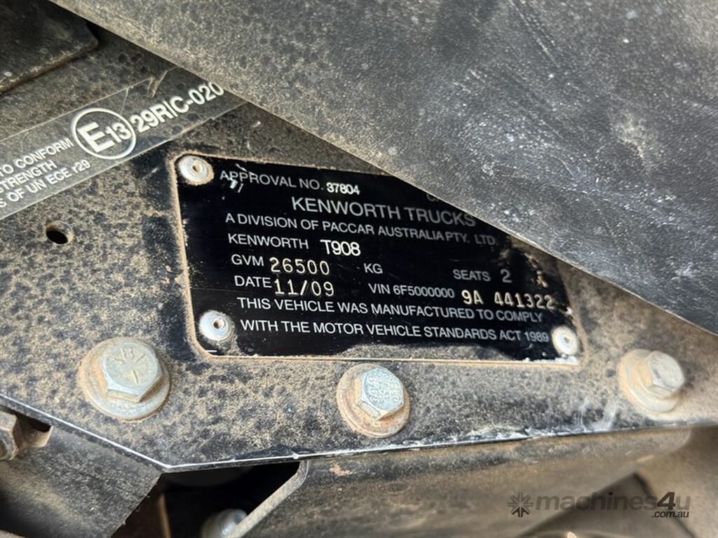 2009 KENWORTH T908 PRIME MOVER, VIN: 6F50000009A441322, E/N: 60816560, 407,915 KM SHOWING, 8,019 HOURS SHOWING, REGISTRATION EXPIRES 10/03/2026, COI EXPIRES 02/03/2027.  LOCATION: HALFERTY STREET, EMERALD, QLD 4720.  INSPECTIONS & COLLECTIONS: MONDAY TO FRIDAY, 8AM TO 4PM.  ENQUIRIES: CAMERON BENSLEY ON  OR CAMERONEMERALDAUCTIONCENTRE
