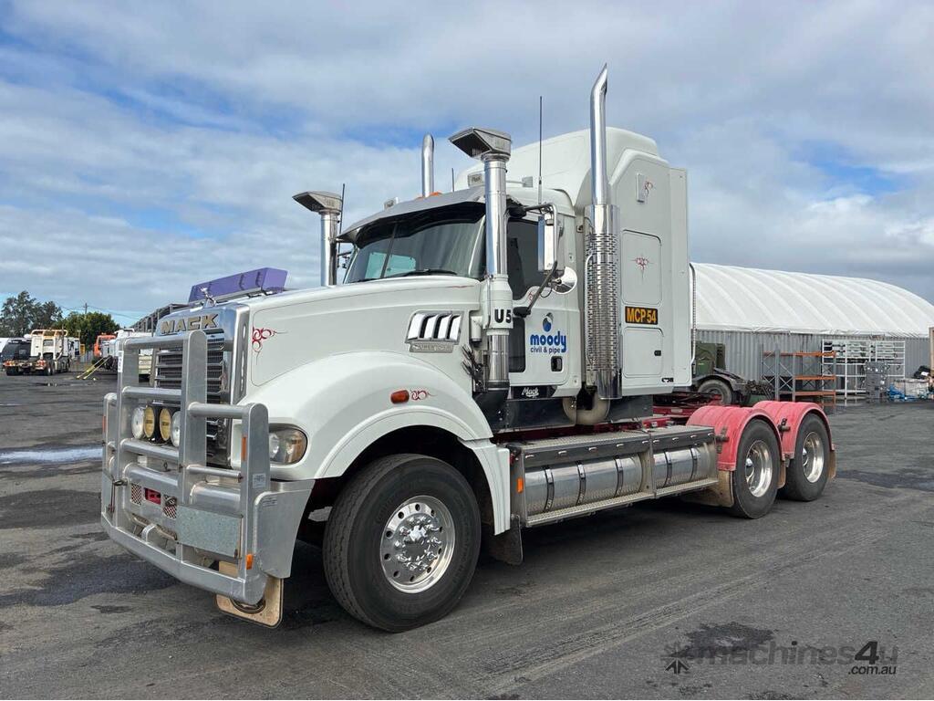 CP: 01/2009,Mack,Superliner,Prime Mover Sleeper Cab,Manual,Airbag,Cummins ISX,6 Cyl,Diesel,18 Gears,202916 (Kms. Showing on Odometer),3696 (Hrs. Showing on Hour meter),Colour: White,Unregistered,VIN: 6FMT13G698D800648,Key No: 9,GVM: 26000,GCM: 120000,Sold with No Plates,Key No: 9