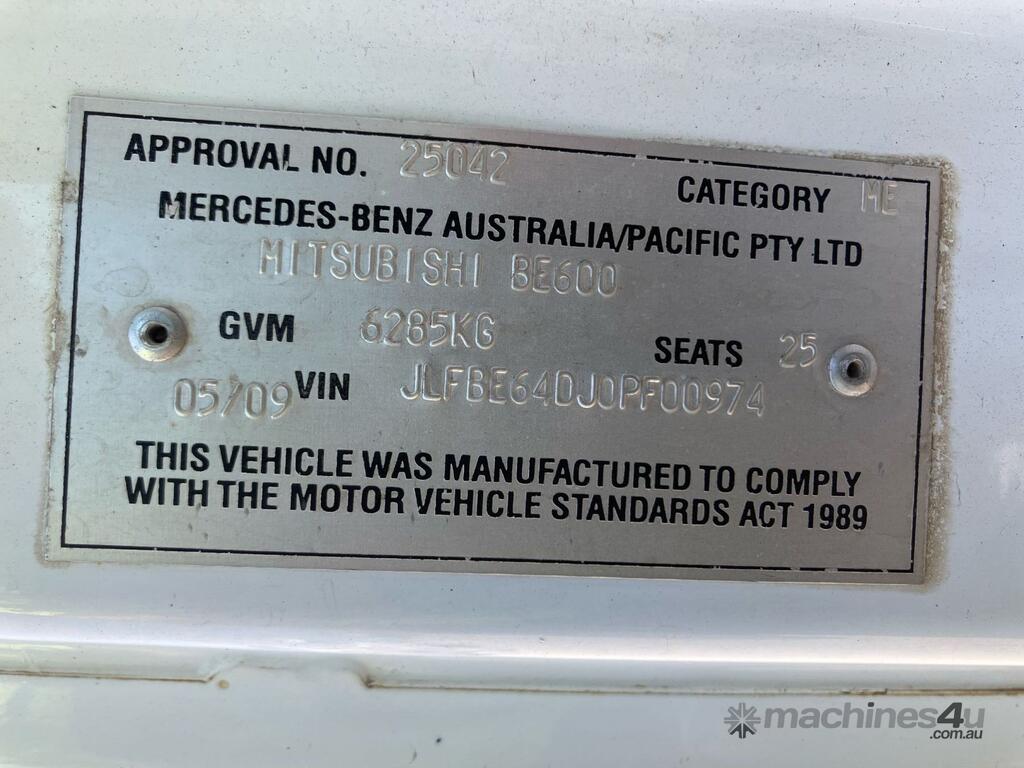 CP: 05/2009,Mitsubishi,BE600,Bus,Manual,Spring,4 Cyl,Diesel,Turbo,296869 (Kms. Showing on Odometer),Hourmeter not visible,Colour: White,Unregistered,VIN: JLFBE64DJ0PF00974,GVM: 6285,Sold with No Plates