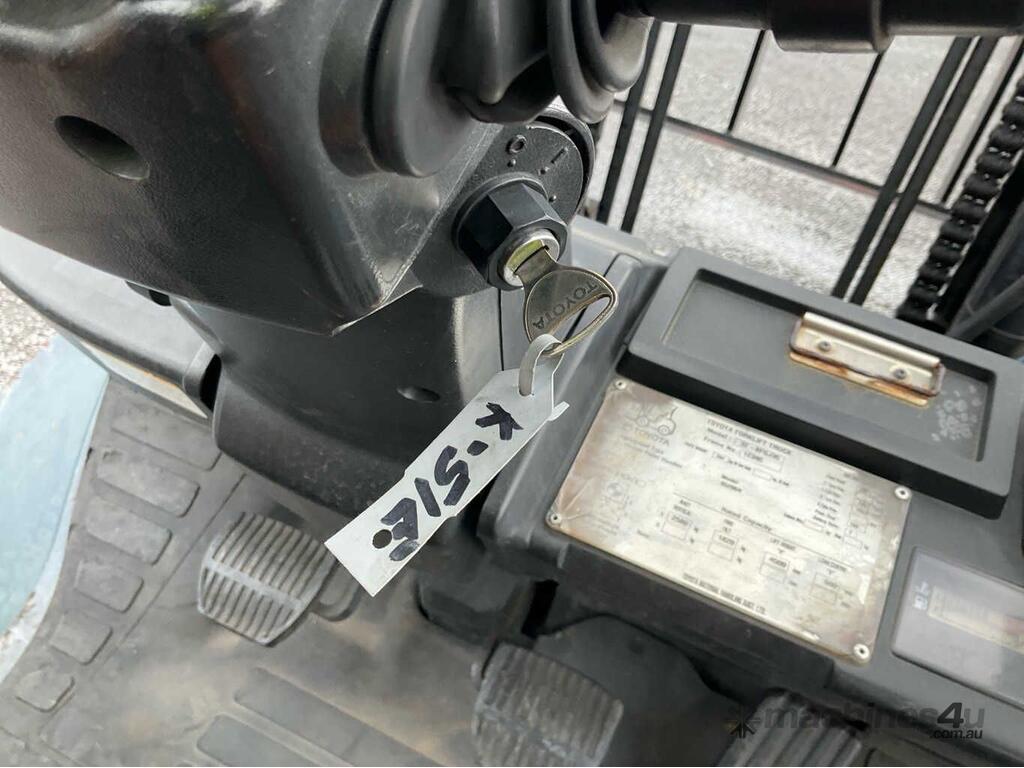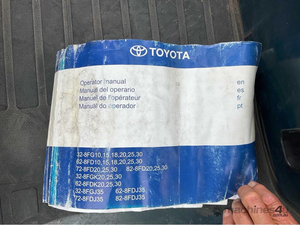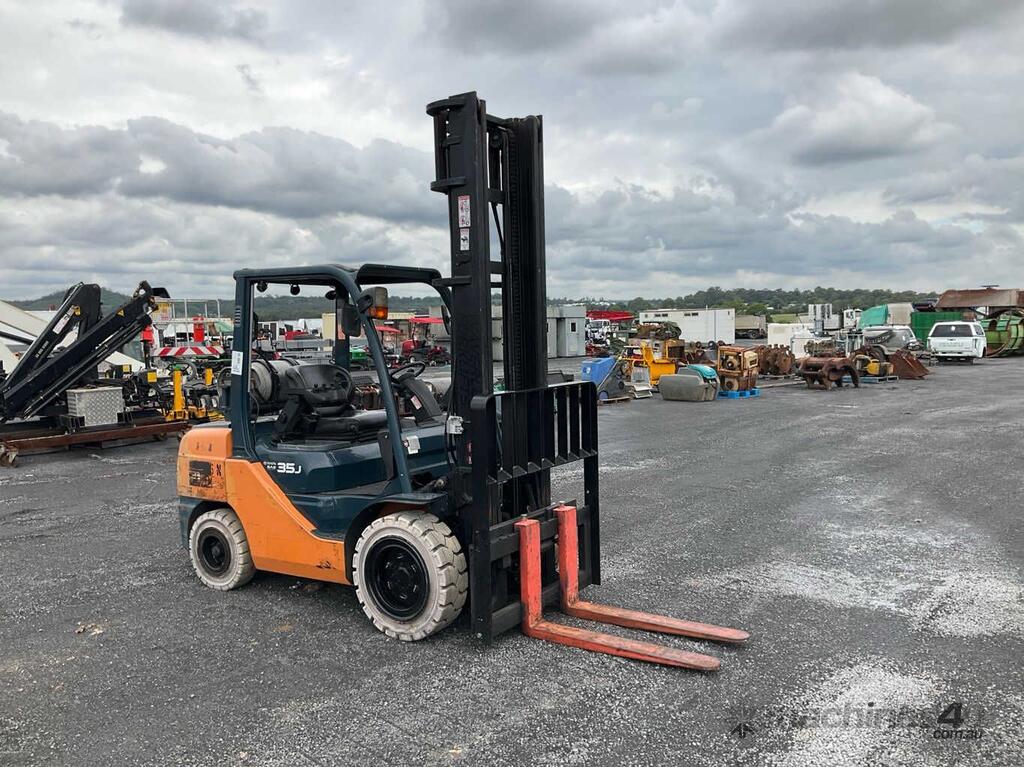 CP: CIRCA 2009,Toyota,32-8FGJ35,Forklift (Counterbalanced),Engine #: 4Y2326907,4 Cyl,Petrol & LPG (Dual),Odometer not visible,21389 (Hrs. Showing on Hour meter),Colour: Orange,Unregistered,Serial No: 12395,Sold with No Plates,Key No: 51E