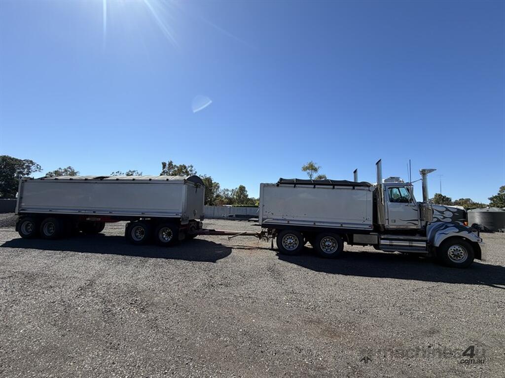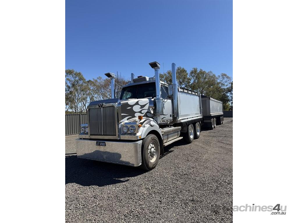 2009 western star 4900FX & Quad dog PBS / Prime mover GVM:26,390kg GCM 120,000kg VIN:5KKKAF0049PAK6024 Rego: JT 4900 Expiry : 24/4/2026 Cummins ISX EGR 600HP 18 speed manual Diff: Meritor RT50-160GP 4.89 Neway AD-246 Suspension Rebuild history 2023 engine 434115km in chassis , 2022 Clutch & Gear box 398710km. New turbo , turbo actuator, compressor, alternator and new track rods all in the last 3 years. Engineered for truck and quad combination and prime mover application ( bin not quick release tu