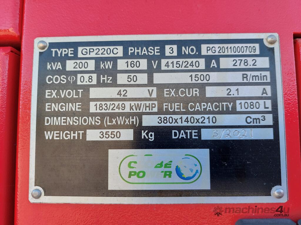 Ex Rental 200KVA Primepower 220KVA Standby Generator.
