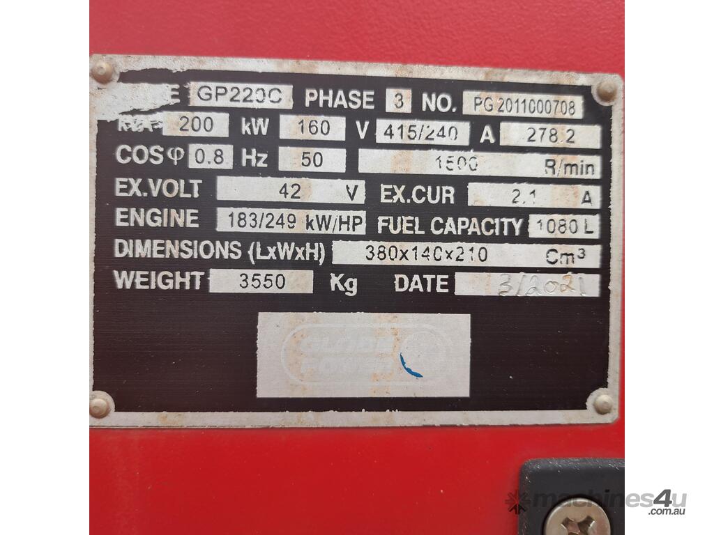 Ex Rental 200KVA Primepower 220KVA Standby Generator.