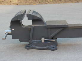 Massive Clamping Capacity Vice. 200mm wide jaws with 220mm opening and deep 110mm throat provide a powerful, secure grip on large workpieces, wood, metal, pipe, and irregular shapes.
