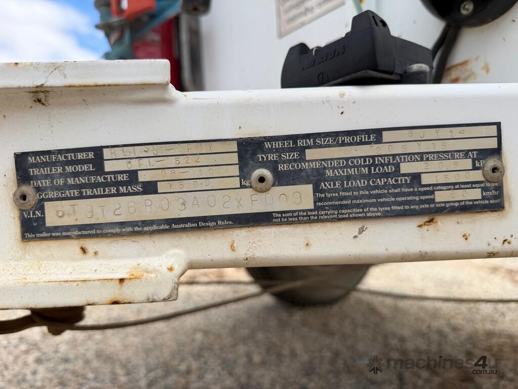 CP: 06/2010,Built: 06/2010,Bliss Fox,Light Tower,Odometer not visible,8451 (Hrs. Showing on Hour meter),Colour: White,Unregistered,VIN: 6T9T26R03A02XF009,Sold with No Plates
